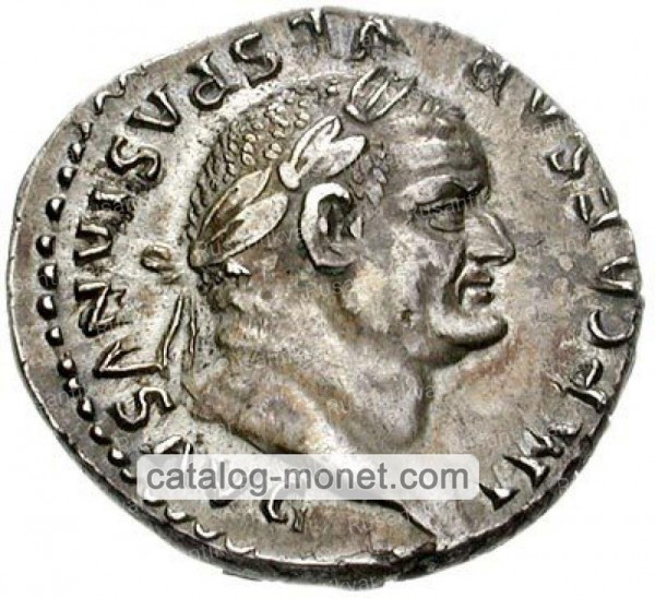 IMP. CAES. VESPASIAN. AVG. P. M. TR. P. P. P. COS. VII — голова Веспасиана в лавровом венке вправо.