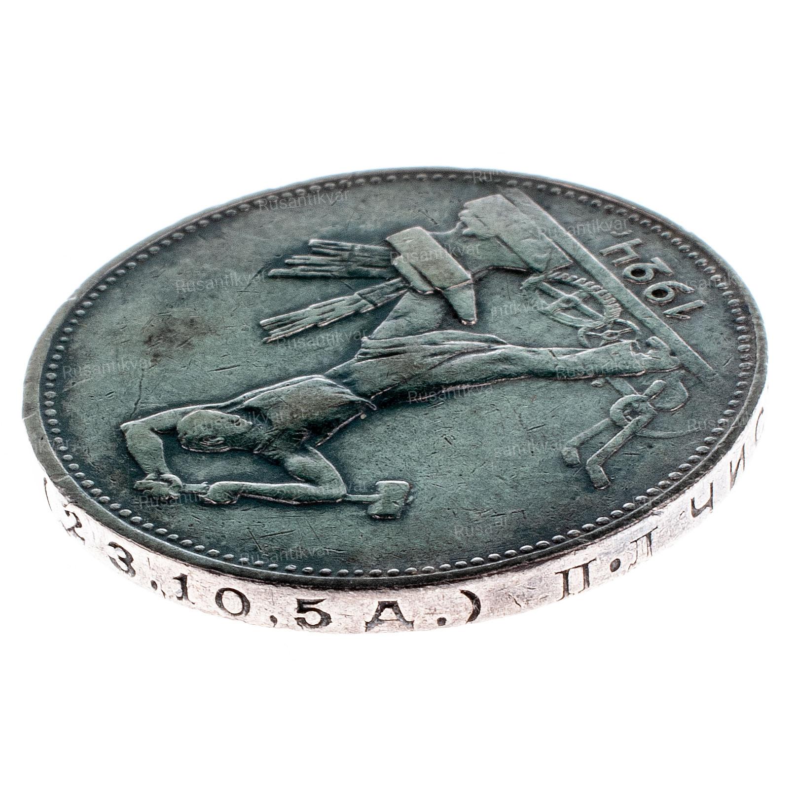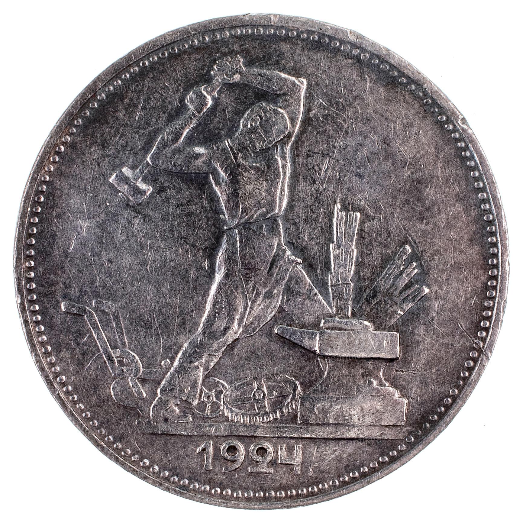Эти красивые серебряные монеты, сегодня может служить ярким примером искусства и одним из символов раннего Советского государства. Полтинники или 50 копеечные монеты повторяли царскую монетную стопу, вес, толщину, диаметр, оформление гурта, а отличие было только в оформлении рисунка сторон. Власти начали чеканку крупных монет из серебра ещё в 1921 году, тогда у полтинников на аверсе был изображён герб РСФСР, а на реверсе пятиконечная звезда. С 1924 года, после образования Советского Союза, дизайн монет тоже изменился, в таком виде полтинники выпускались до 1927 года, а мелкие 10, 15, 20 копеек чеканили из биллона (серебра 500 пробы) вплоть до 1930 года. В дальнейшем выпуск серебряной тиражной монеты прекратили из-за дороговизны и до 60-х годов номинала 50 копеек и рубль на монетах не существовало. В 1961 50 копеек стали изготавливать из обычного медно-никелевого сплава.