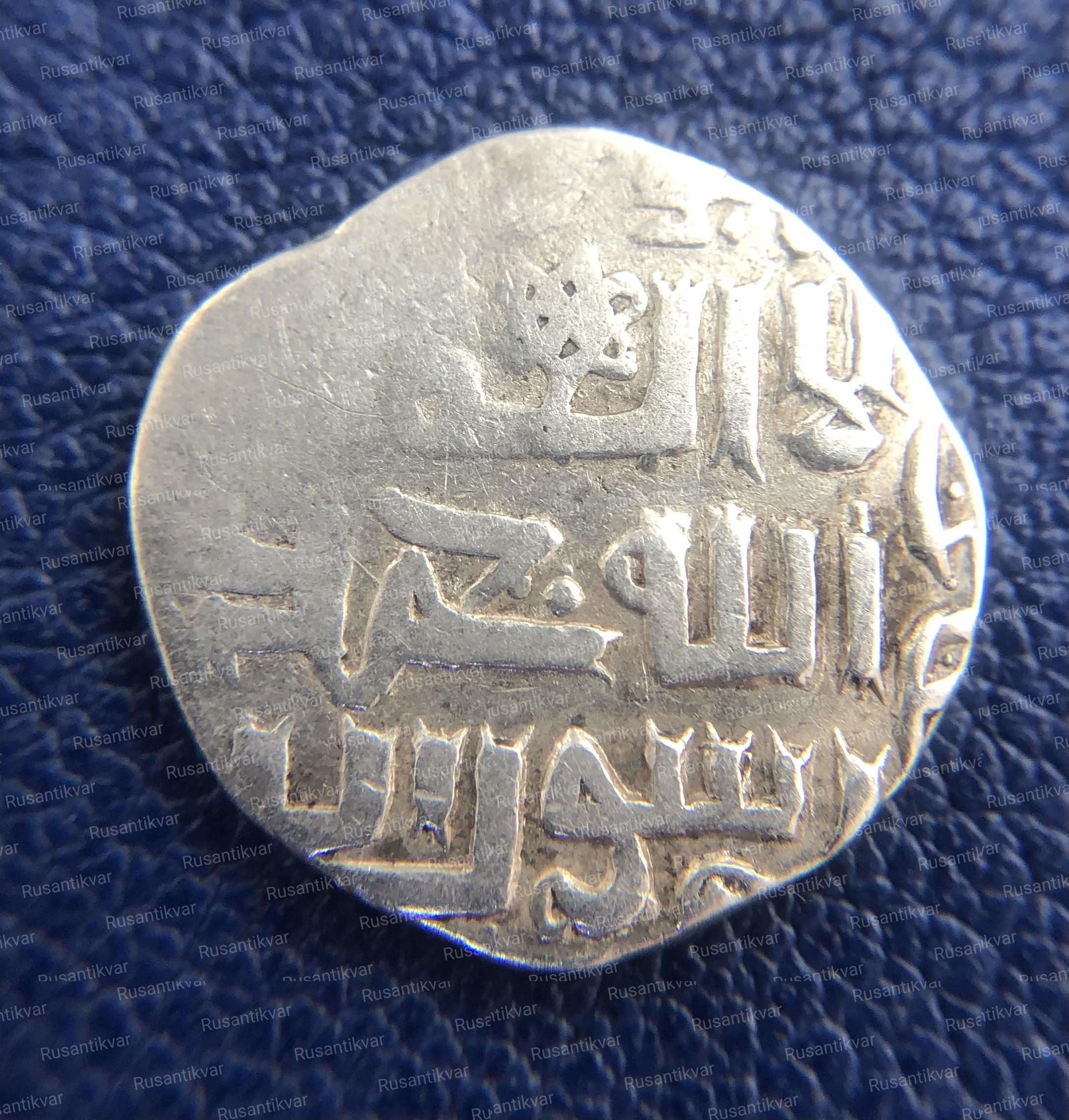 Фальшивый данг хана Узбека Сарайского чекана 739 г.х.Вес.1.05 гр.Меднай сплав,платинировка серебром.