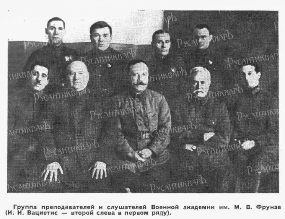 Командарм 2-го ранга Иоаким Вациетис. Иоаким Иоакимович Вацетис (Вациетис; латыш. Jukums Vācietis (родное имя — Юкумс, сменил на Иоаким в 1906 году[3]); 11 [23] ноября 1873[1], Яунлутрини[вд], Лутринская волость[вд], Гольдингенский уезд, Курляндская губерния, Российская империя — 28 июля 1938[2], Москва[2]) — российский офицер и советский военачальник. Первый главнокомандующий всеми Вооружёнными Силами РСФСР (1 сентября 1918 — 9 июля 1919 года). Командарм 2-го ранга (20 ноября 1935). Профессор (27 июня 1927).
