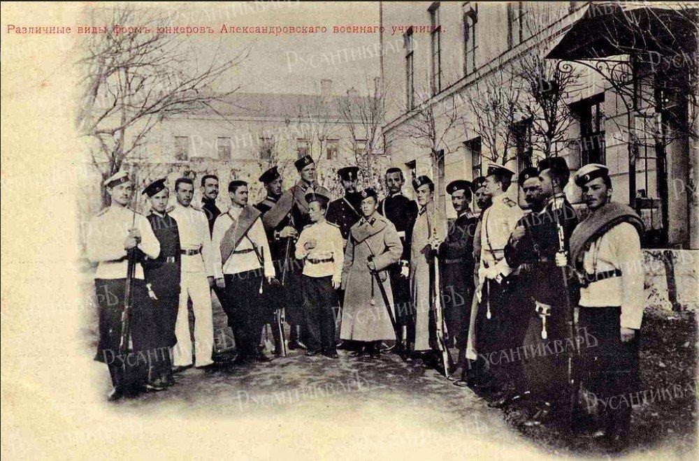 Накануне Первой мировой войны юнкера училища носили алые погоны без выпушки, обшитые серебряным галуном.