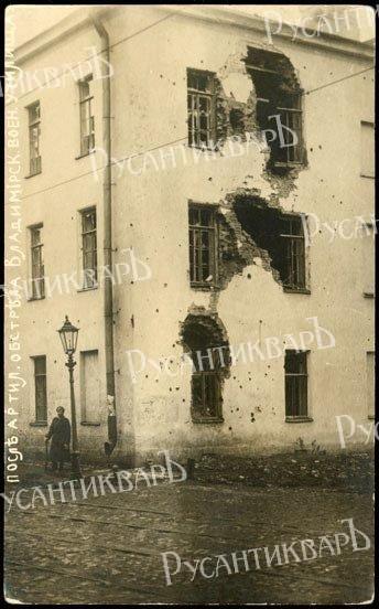 Офицеры и юнкера Владимирского училища не приняли Революцию в октябре 1917 года. В Петрограде училище практически стало единственным военно - учебным заведением принявшем активное участие в вооруженном выступлении правительственных войск против большевиков. 29 октября около 4 часов утра юнкера разоружили караул охранявший училище, арестовали комиссаров Военно-революционного комитета и оказали вооружённое сопротивление большевикам, дезертирам и "пролетариату" пытавшимся захватить училище. Большевики подвезли трёхдюймовые орудия из Петропавловской крепости и красная батарея открыла огонь прямой наводкой по зданию.