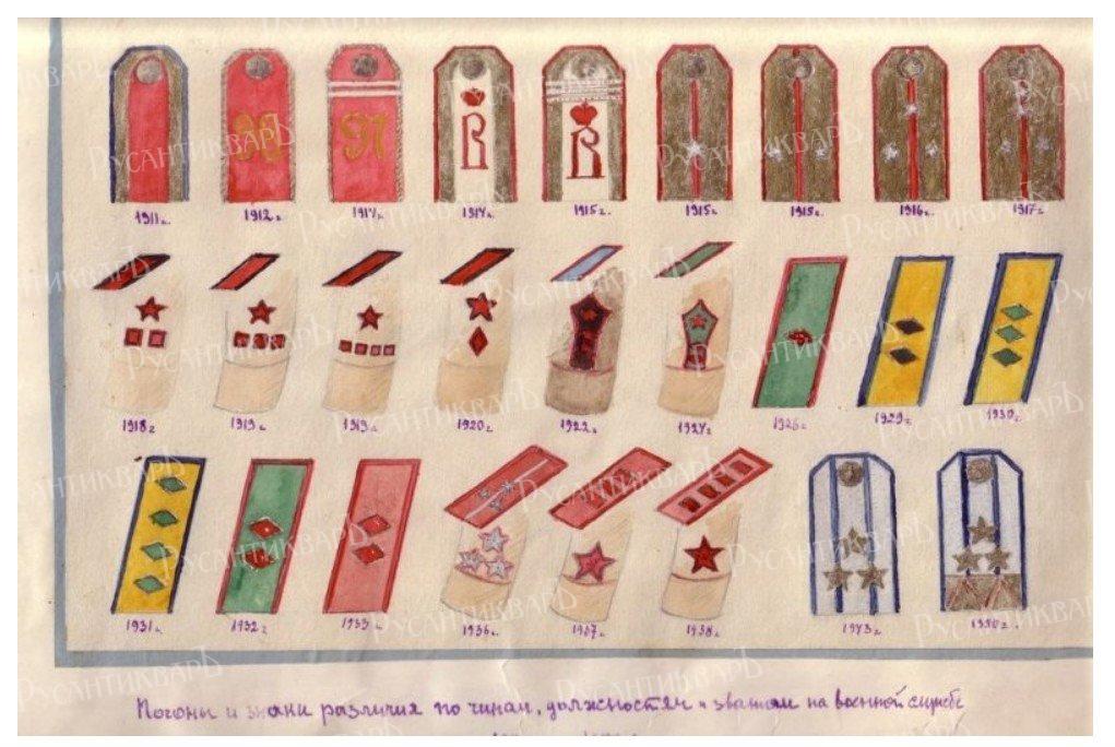Валериан Вержбицкий оставил в своем архиве уникальный документ. Красками он нарисовал погоны и знаки отличия, которые он носил в жизни.