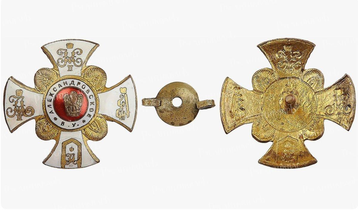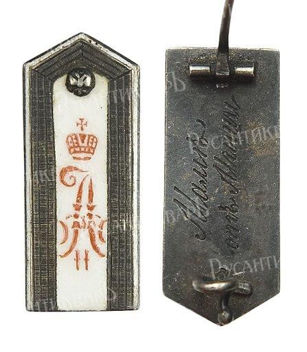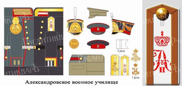 Юнкера Александровского училища носили белые погоны с алым вензелем императора Александра II (А II под короной).