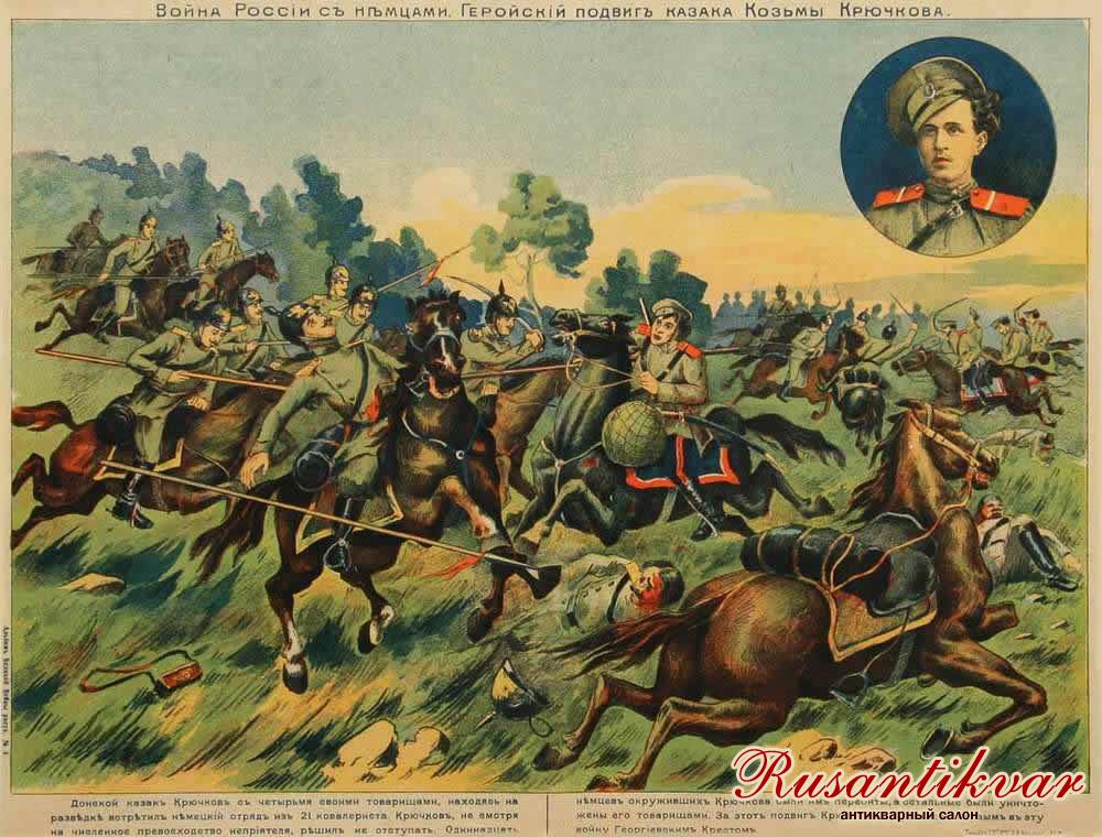 11. Геройский подвиг казака Козьмы Крючкова. Плакат.