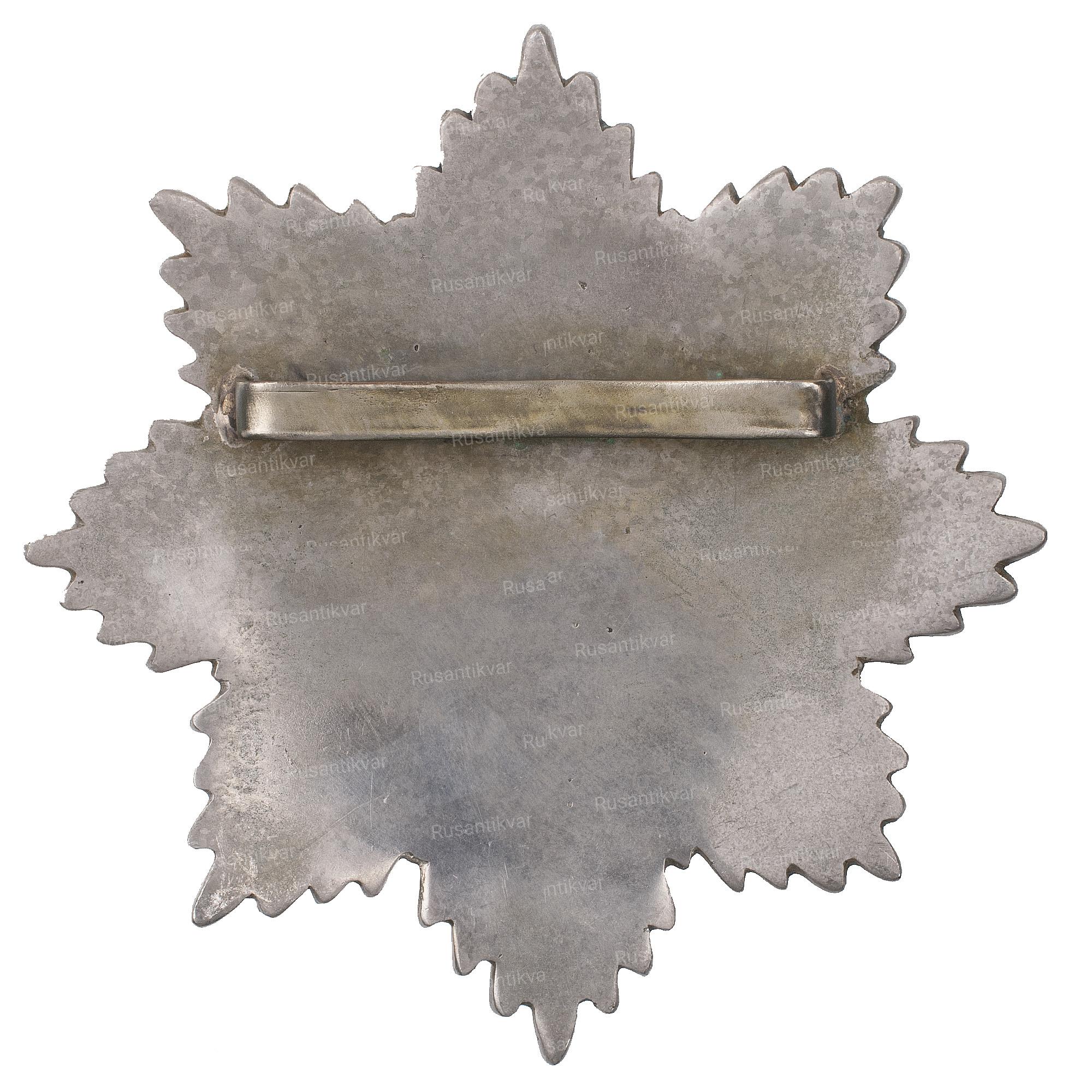 Учрежден Эмиром Аманулла - ханом в 1922 г. Кабул, неизвестная мастерская, 1922 - 1923 гг. Белый металл (основание), серебро (центральный медальон), 154.83 гр. Размеры 93.5 х 53 мм. Сохранность отличная (UNC-). Редкий (Р1).