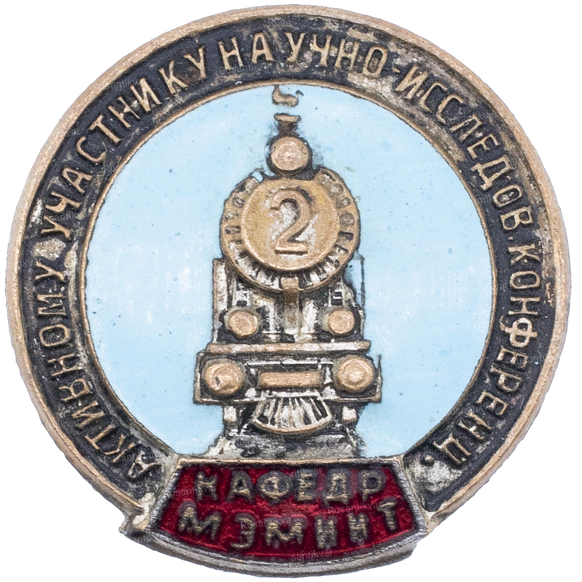 ЗНАК "АКТИВНОМУ УЧАСТНИКУ НАУЧНО-ИССЛЕДОВ.КОНФЕРЕНЦ. КАФЕДР.МЭМИИТ"
