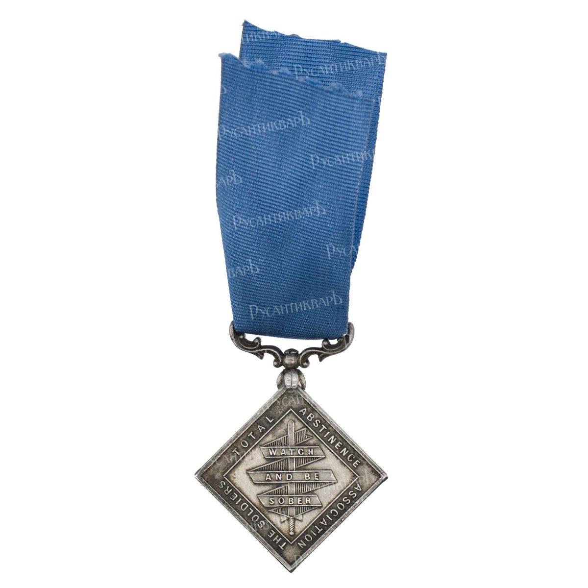 Представленная медаль изготовлена из серебра. На аверсе медали изображены две женские фигуры под пальмой и имеется круговая надпись "Army Temperance Medal. INDIA". На реверсе медали имеется круговая надпись: "Army Temperance Association. 1897". В центре слова: «WATCH AND BE SOBER», что в приблизительном переводе означает «Будь бдительным и трезвым». Данная фраза является прямой цитатой из Библии и лозунгом Ассоциации полного воздержания. В первом послании Святого Апостола Павла к Фессалоникам говориться, что Страшный Суд может произойти в любой момент, поэтому надо «бодрствовать и быть трезвым».
