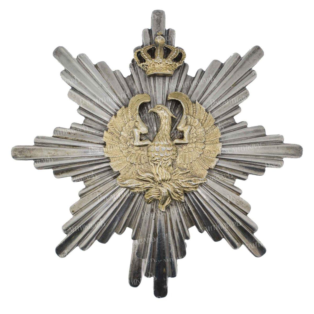 - 1 степень - Кавалер Большого Креста. Вручаются: Знак Ордена на широкой ленте через правое плечо и восьмилучевая Звезда на левую сторону груди;