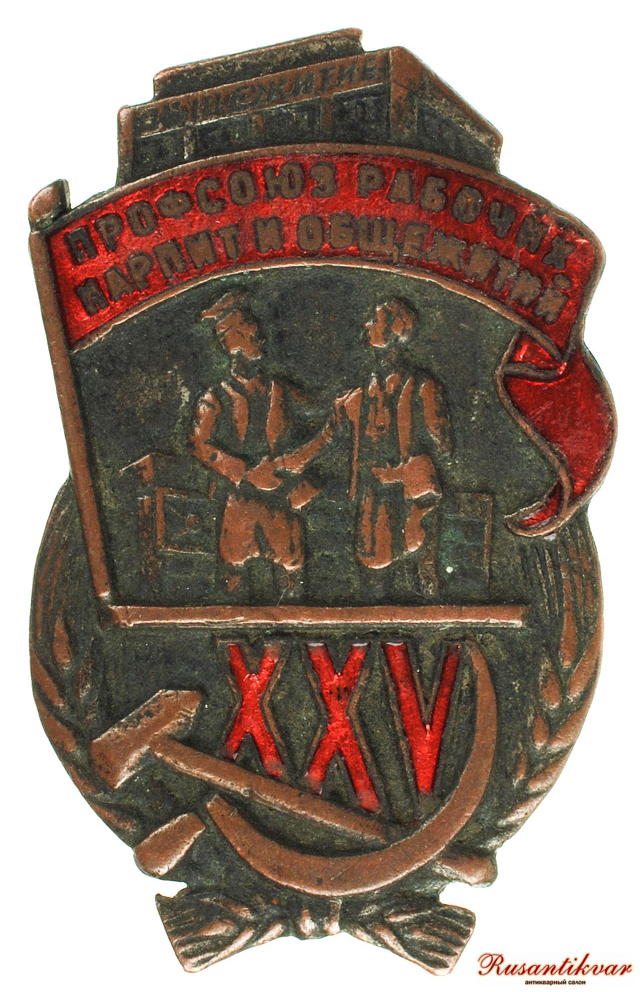 Ещё знак "В честь 25-летия профсоюза рабочих народного питания и общежитий"