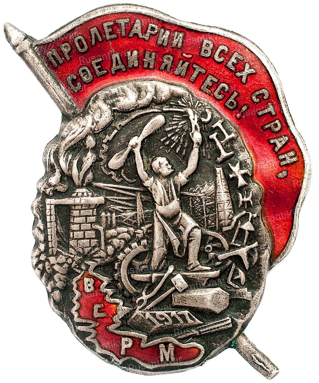 Серебро. Эмаль. Винт. В конце 19 века положение российских трудящихся было очень плачевным. Мизерные заработные платы, отсутствие выходных и праздничных дней, социальных выплат, пособий по беременности и в связи с нетрудоспособностью, долгий рабочий день, который мог состоять из 18 часов – все это переполнило чашу терпения и рабочий класс начал стремиться к объединению для отстаивания собственных прав.