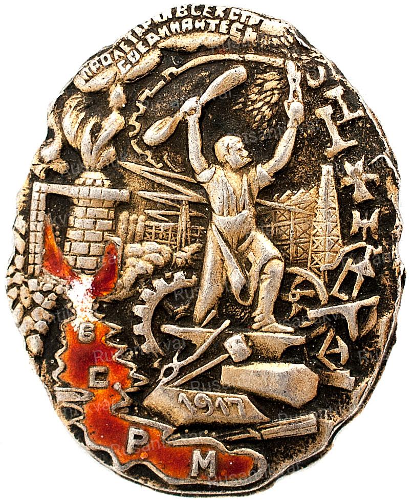 Знак "Профсоюз работников металлистов. ВСРМ" в серебре и бронзе