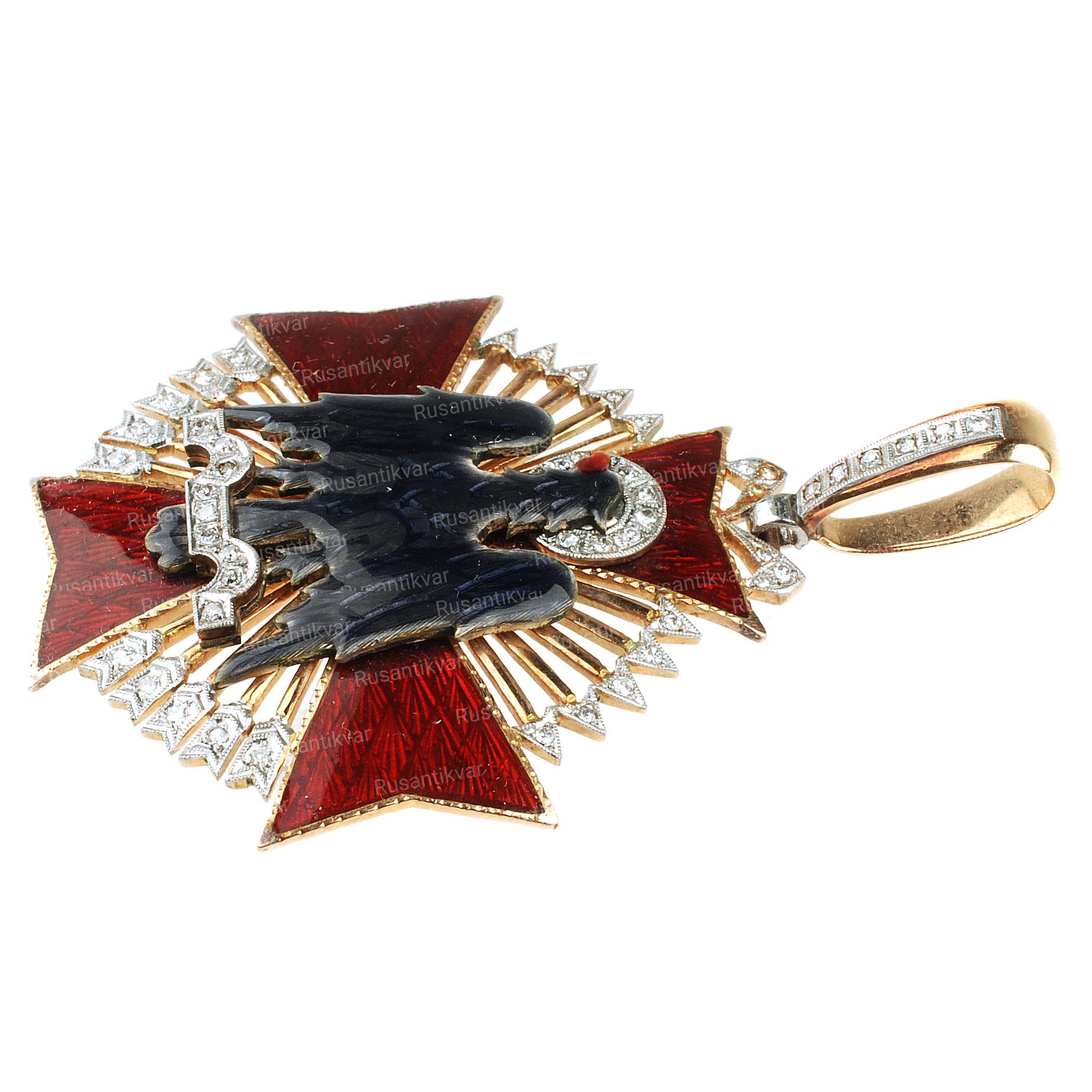 Знак Ордена Военных заслуг I класса. Учрежден 3 августа 1864 года королевой Испании Изабеллой II (1833 – 1864 гг.). Испания. Образец 1938 года (данная модель знака ордена существовала до 1975 года). Награждались испанские военнослужащие за военные заслуги в военное время (красная эмаль для непосредственных участников боевых действий во время военного конфликта). Основными военными конфликтами послужившие основанием для вручения знаков ордена военных заслуг испанским военнослужащим были: гражданская война в Испании (1936 – 1939 гг., сторонники национальной политики генералиссимуса Франсиско Франко (1892 – 1975 гг.), война против Советского Союза (1941 – 1943 гг., “Голубая дивизия”), колониальные конфликты за испанскую колониальную территорию.