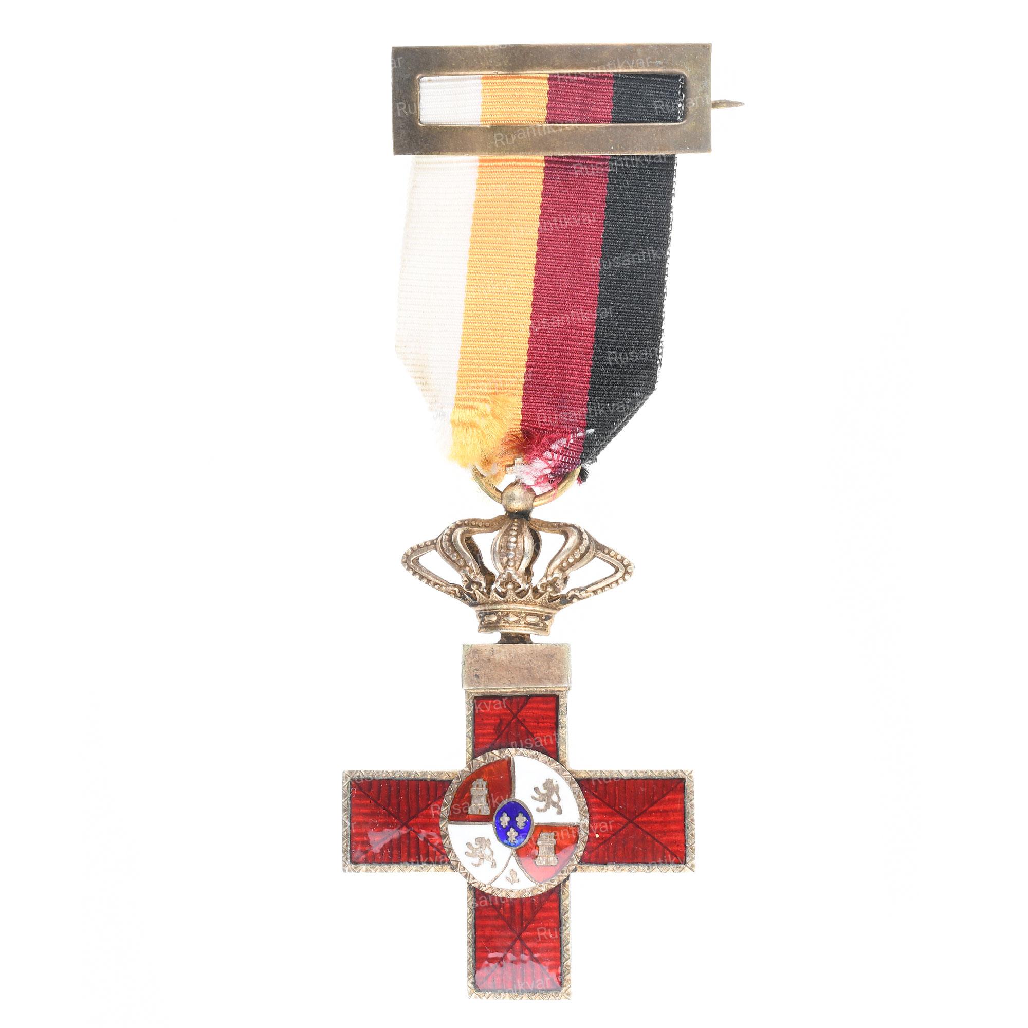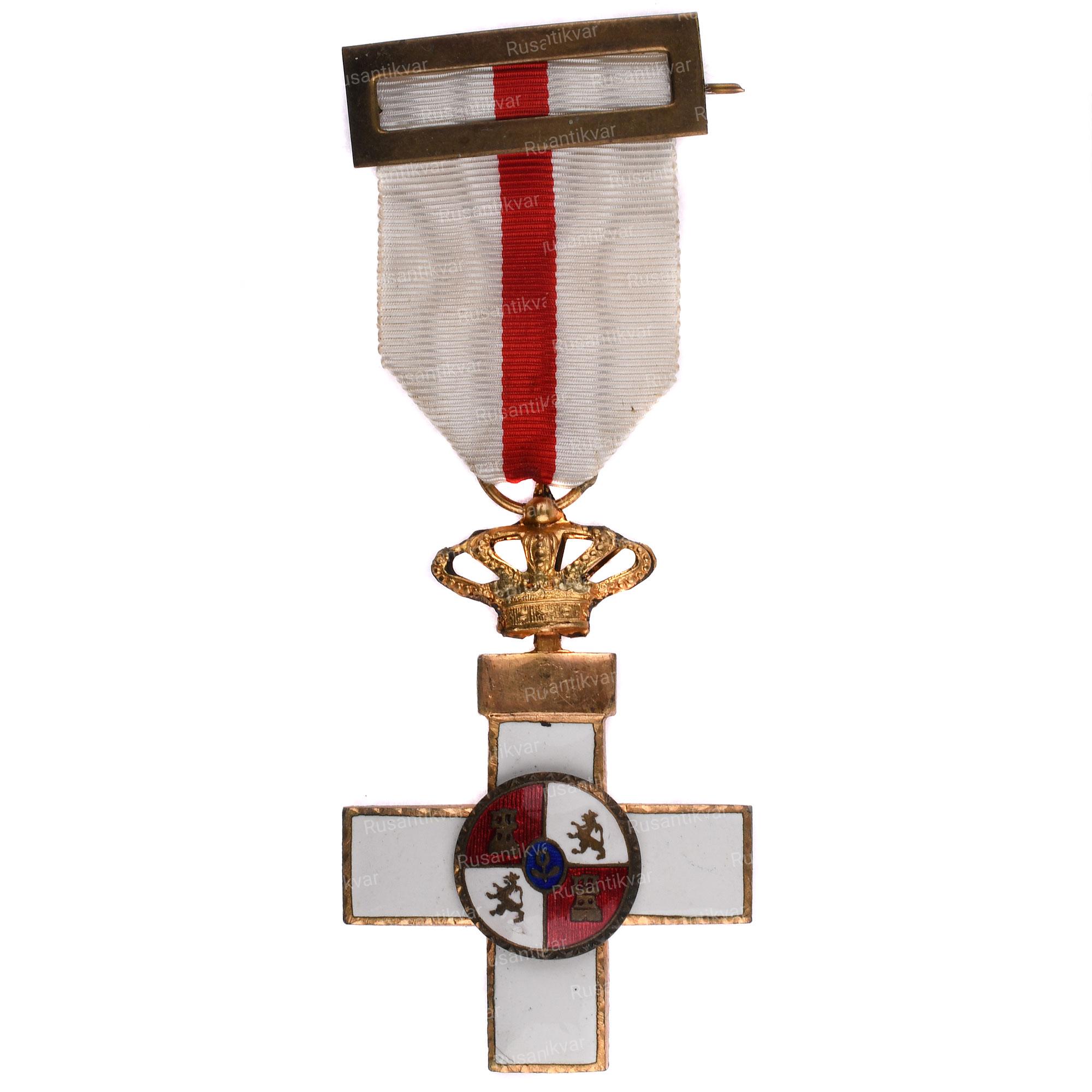 Медаль Испанского Красного Креста. Оригинальное название награды на испанском языке; Medalla de la Cruz roja española. Королевство Испания. Знаки Отличия Испанского креста были учреждены 20 июня 1876 года указом короля Испании Альфонаса XII (годы правления; 1857-1885 гг.).