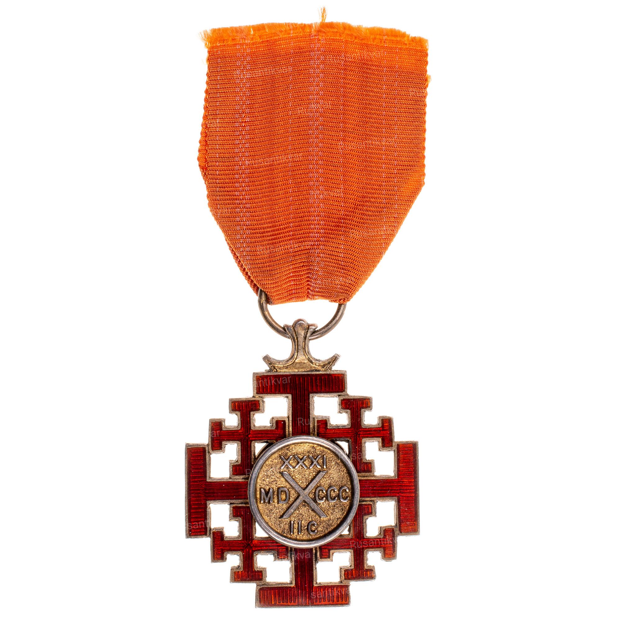 Крест гроба Господня для членов делегации немецкого императора Вильгельма 2. Выдавался лицам сопровождавшим императора на святую землю.Поездка продолжалась с 11 октября по 26 ноября 1898 г. На пике которой была торжественная церемония открытия Немецкой церкви Спасителя в Иерусалиме . В рамках его поездки в Палестину были посещены города Константинополь , Хайфа , Яффо , Иерусалим и Бейрут , которые тогда были частью Османской империи . Император поддерживал власть султана в нестабильной Османской империи после балканского кризиса , пытался политически укрепить христианство , особенно протестантскую церковь, и поощрял немецких христианских и еврейских поселенцев, не желая встать на их защиту политически.