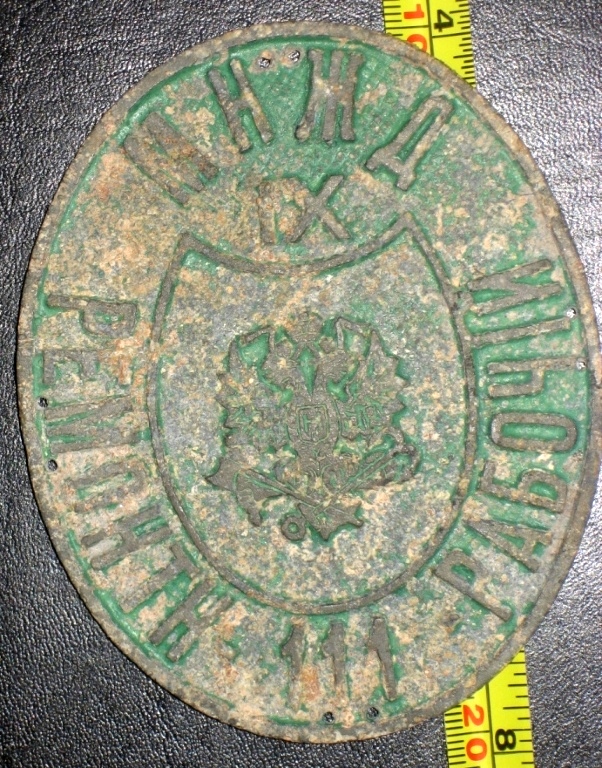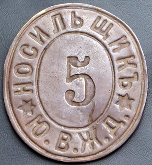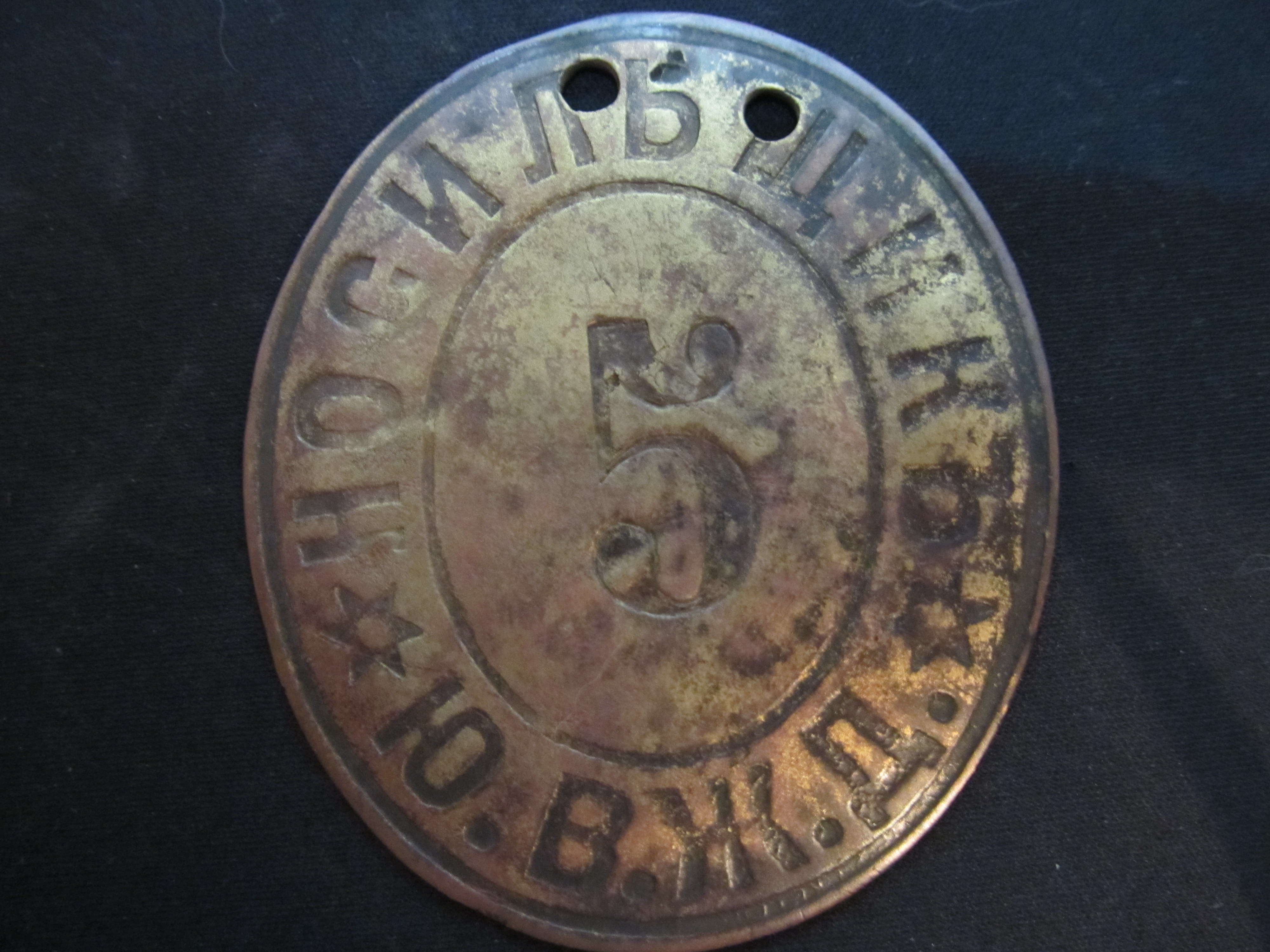 Должностной знак; Носильщик Юго-Восточных железных дорог. Парадокс ситуации: 2знака с одним номером, найдены в разных местах.