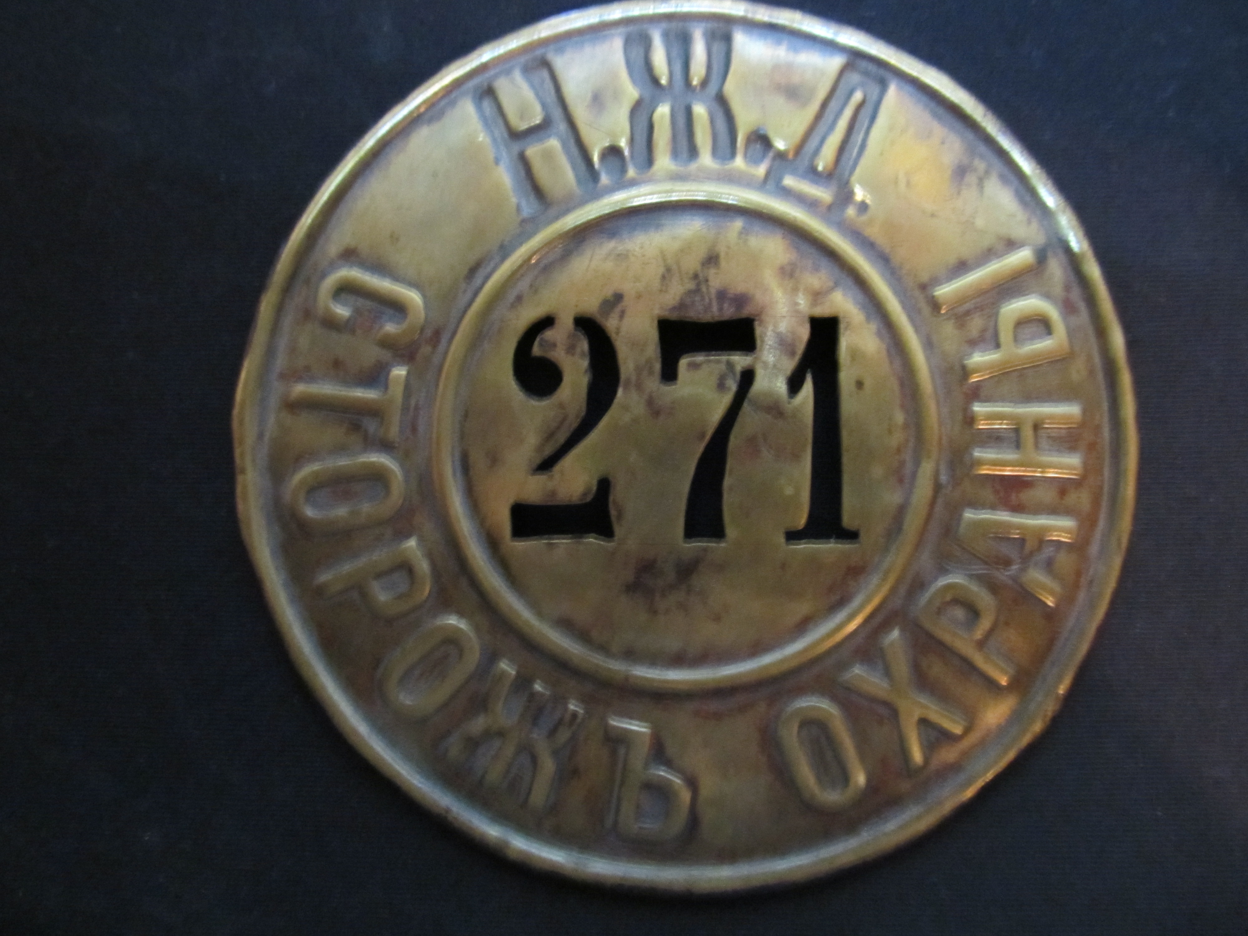 Должностной знак; Сторож охраны Николаевской железной дороги.