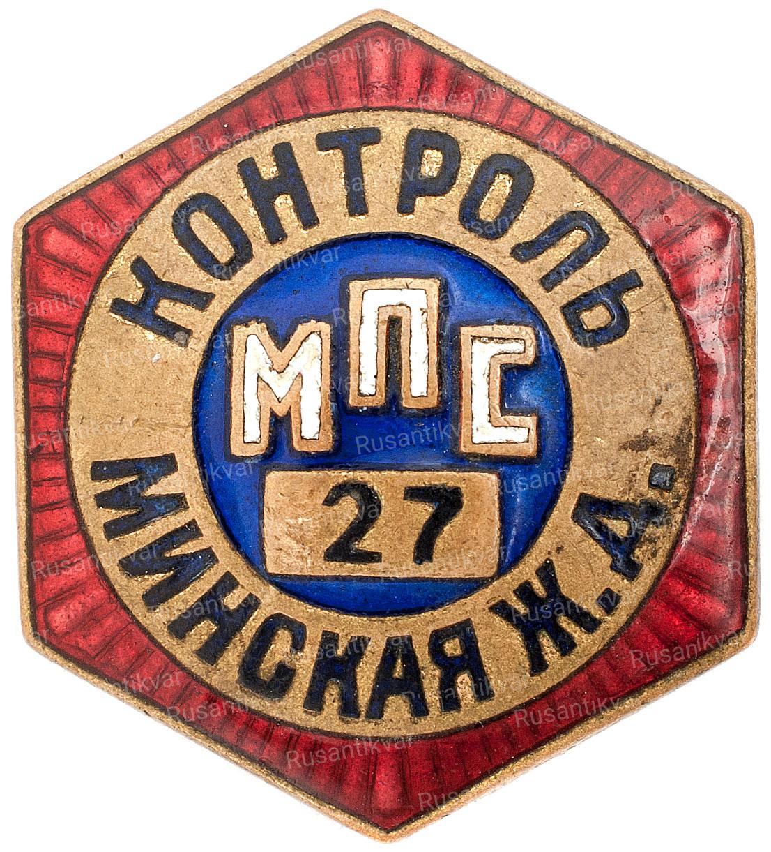 Знак "Контроль Министерство Путей Сообщения (МПС). Минская железная дорога". №27