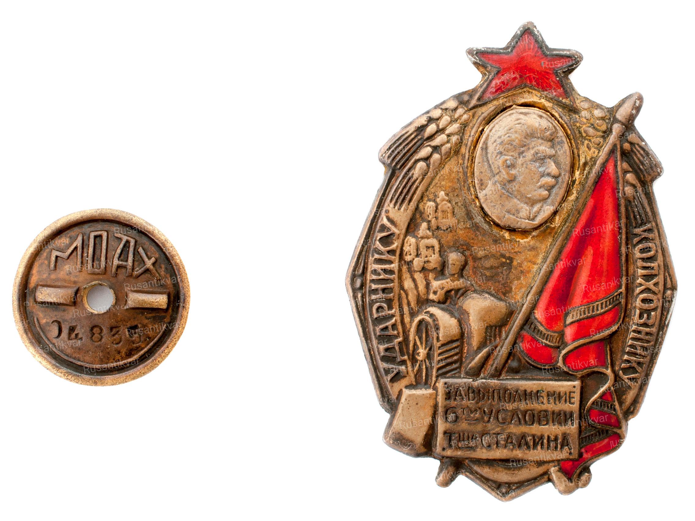 Знак "Ударнику колхознику. За выполнение 6-ти условий т-ща Сталина" 1930-е г.