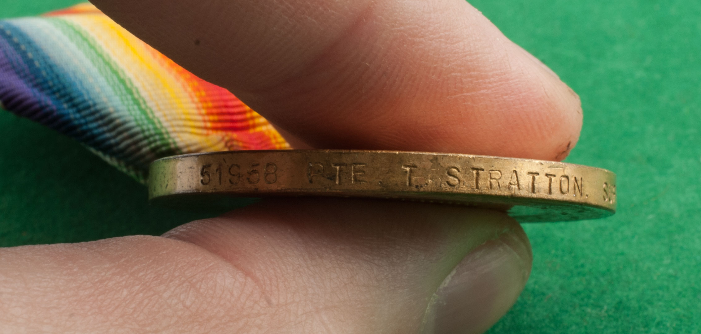 На гурте медали прописными буквами выполнена надпись: “Из захваченных орудий” (“Aus erobertem Geschuetz”). Известны оба варианта расположения надписи относительно аверса.