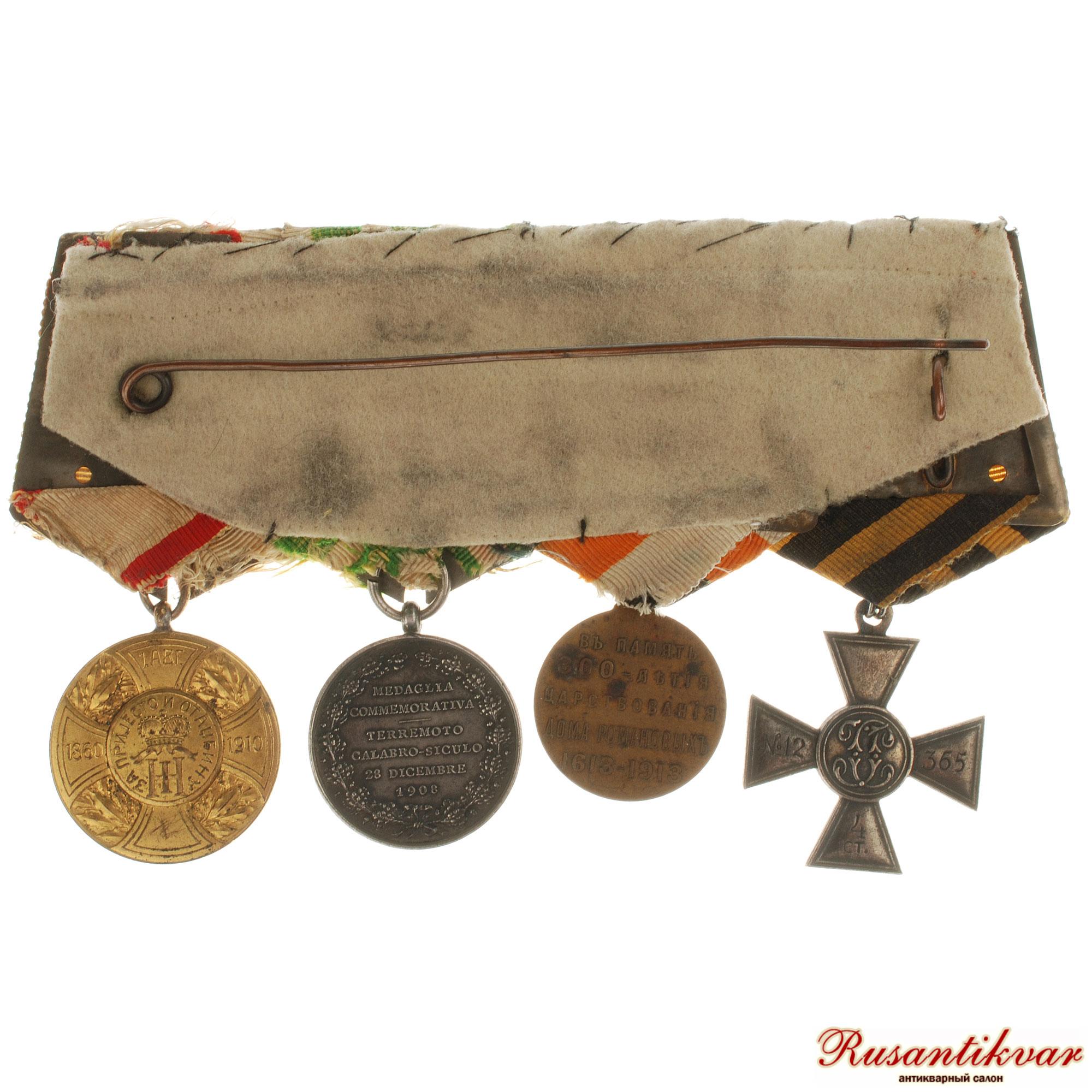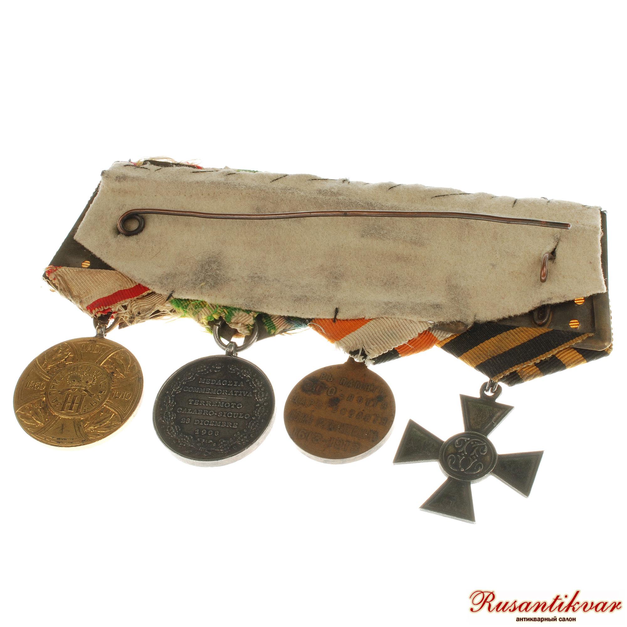Колодка Российского моряка с итальянской медалью «В память землетрясения в Калабрии и на Сицилии 28 декабря 1908 года».