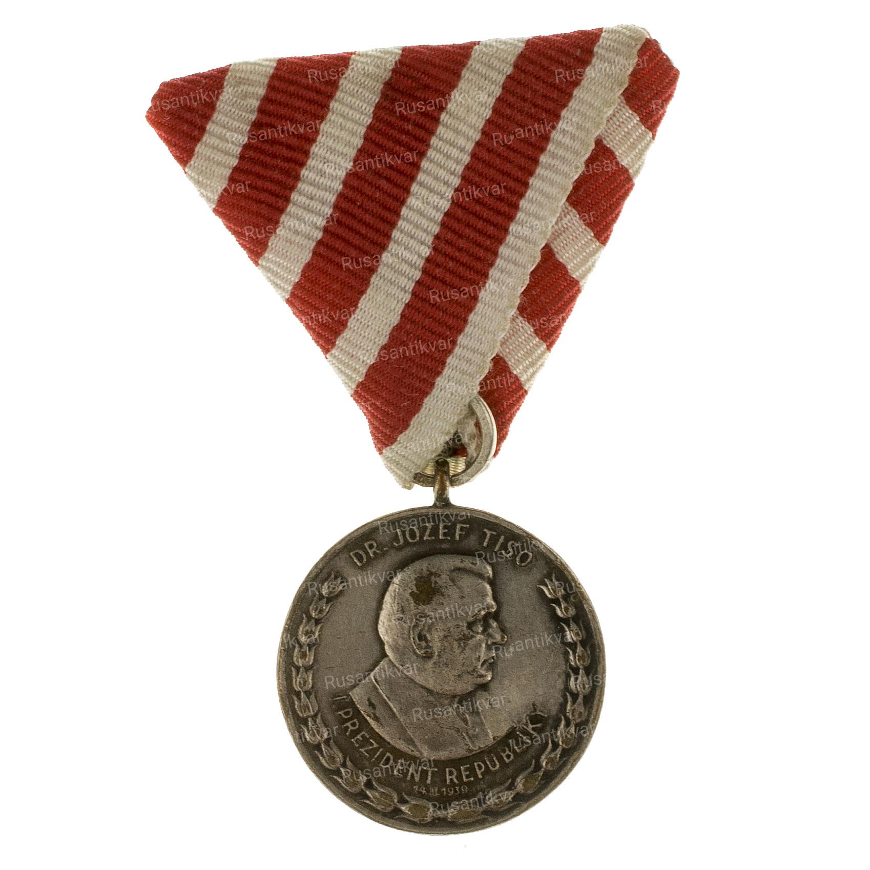 Награда имела три степени. На лицевой стороне медали помешен портрет И.Тисо. повернутый вправо. Он окружен надписью: «Pr.JOZEF TISO I PRESIDENT RESPUBLIKI 14 III 1939» («[Профессор] Иозеф Тисо I президент республики 14 III 1939»). На реверсе медали — герб Словакии с девизом «ZA BOHA, ZA NAROD» («За Бога, за народ»).