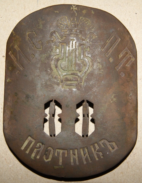 Должностнойь знак служителя Ярославской тюрьмы. Корона была спилена вероятно после февральской революции 1917 года.