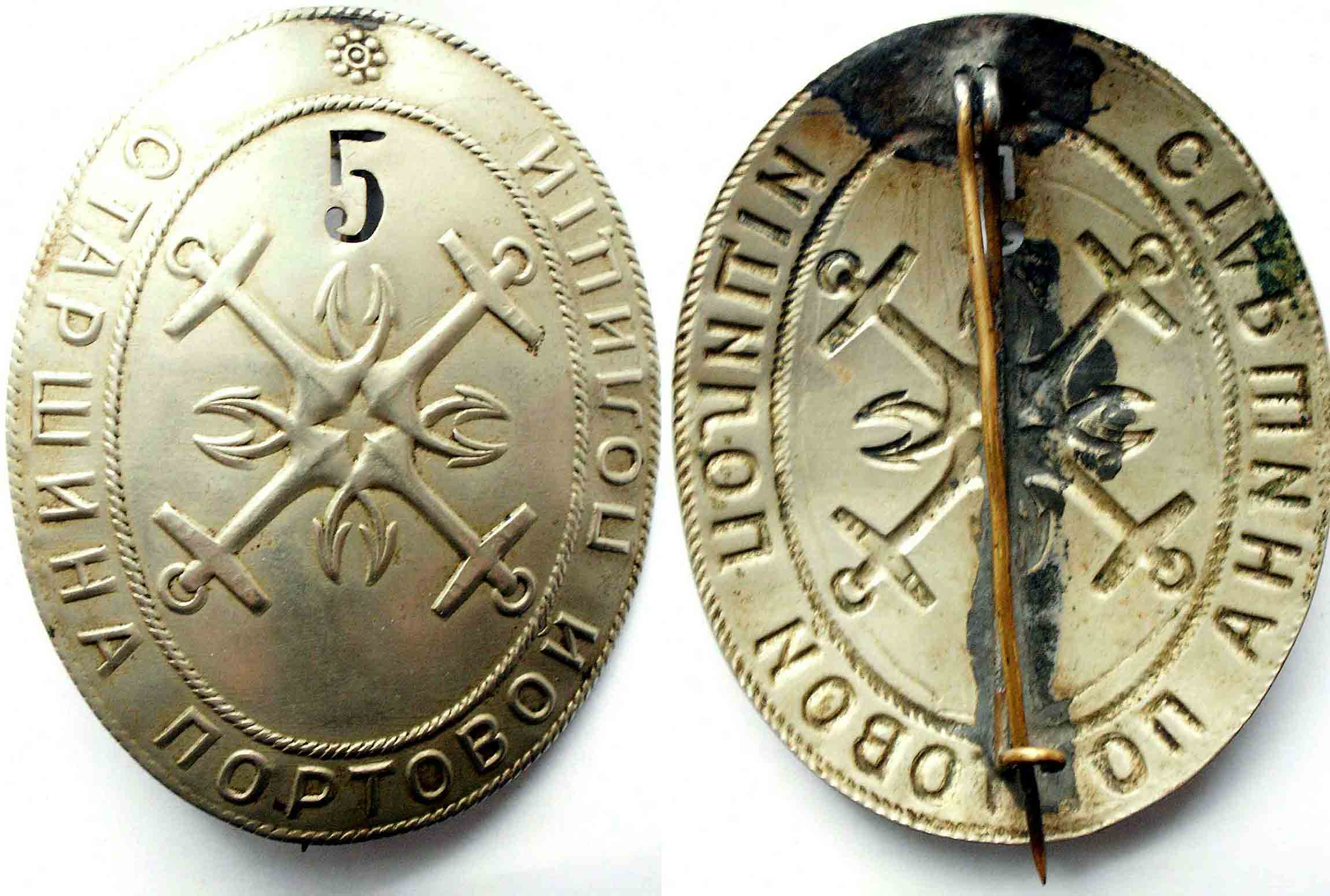 Знак на погон служащего Кронштадской портовой полиции; Должностной знак; Старшина Кронштадской портовой полиции.