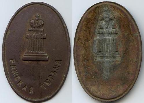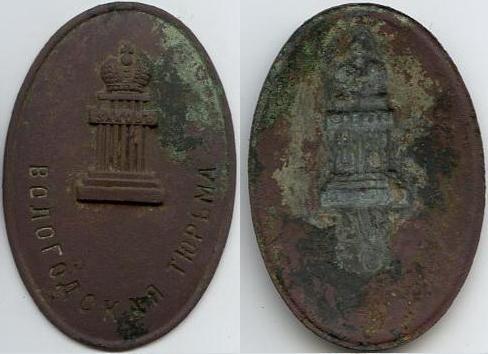 Служебные знаки служителей: Витебской тюрьмы, Варнавинской тюрьмы, Вологодской тюрьмы, Волчанской тюрьмы, Ряжской тюрьмы.
