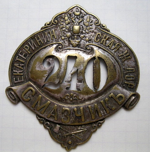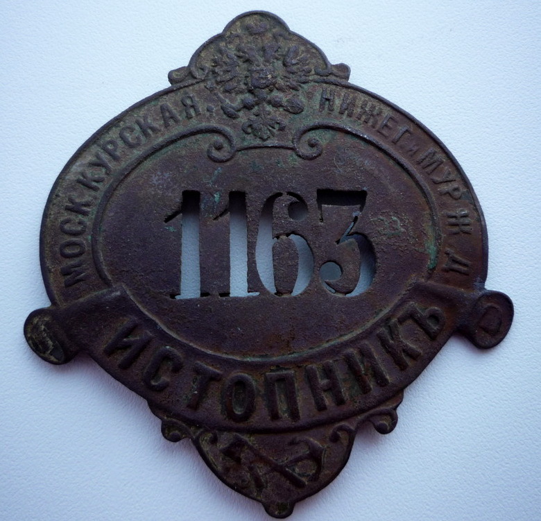 Должностные знаки; Истопник Московско-Курской, Нижегородской и Муромской железных дорог; Чистильщик Московско-Курской, Нижегородской и Муромской железных дорог. Смазчик Екатерининской железной дороги.