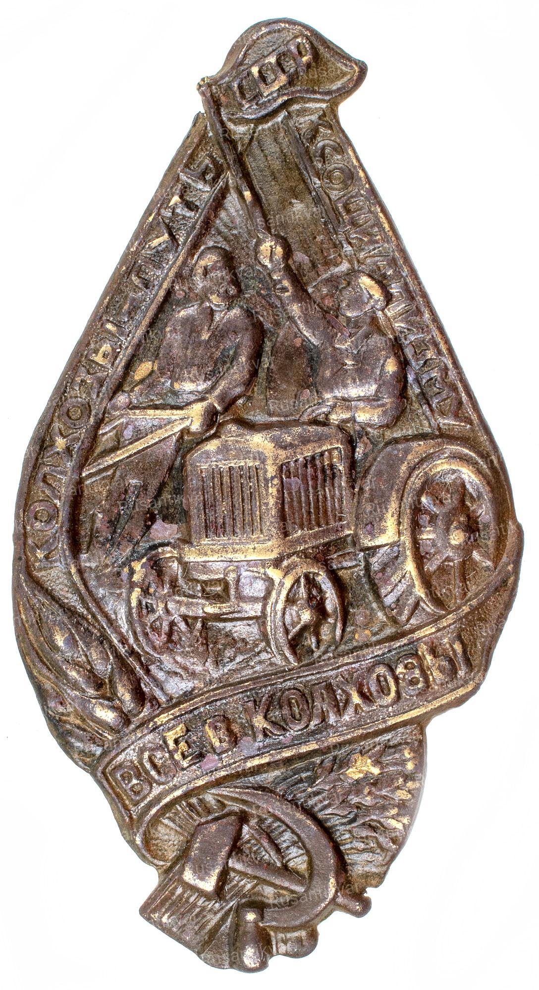 Знак "Колхозы-путь к Социализму. Все в колхозы."
