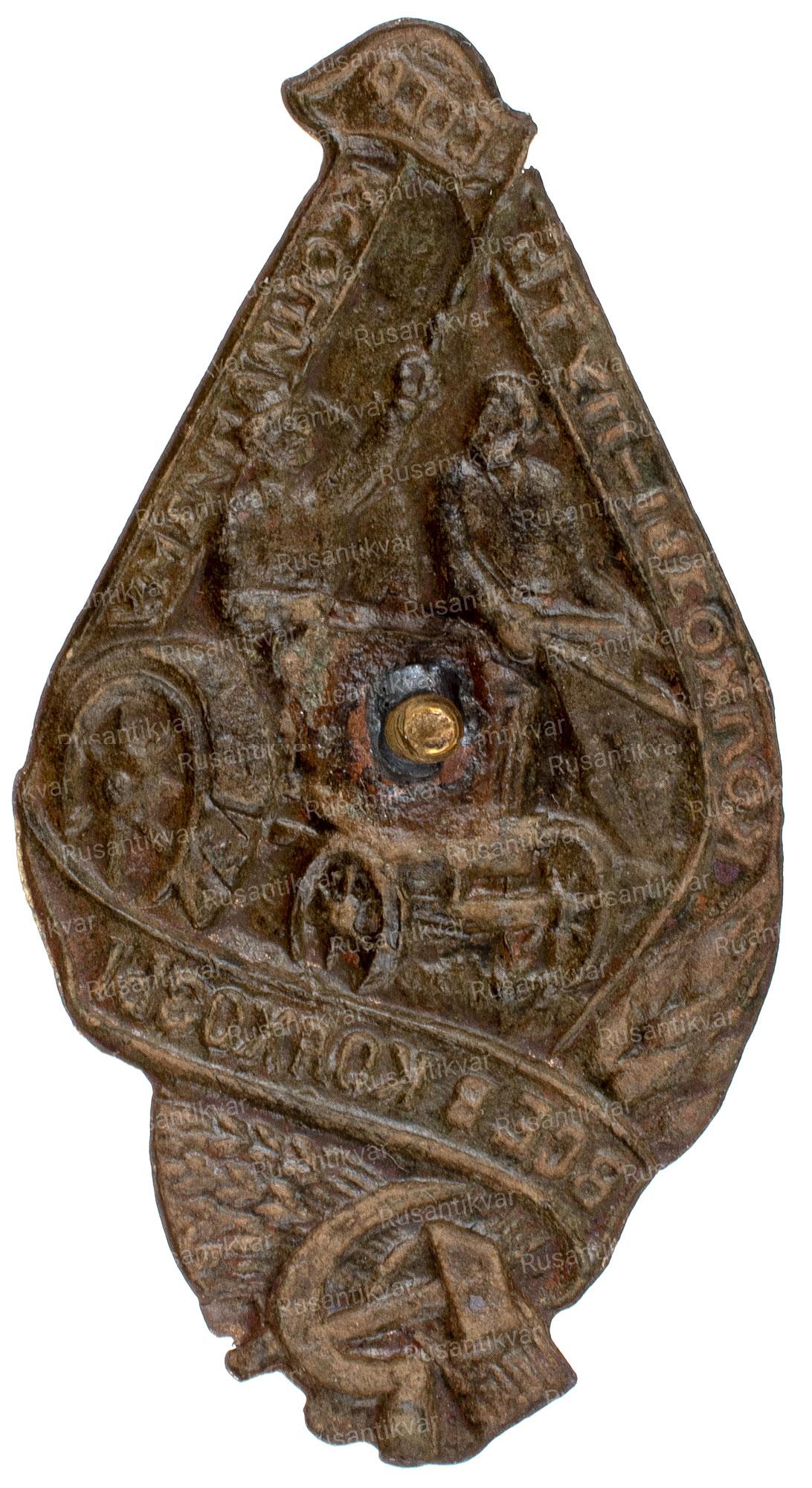 Знак "Колхознику-ударнику. Советский лен должен быть лучшим в мире. Калининская область"
