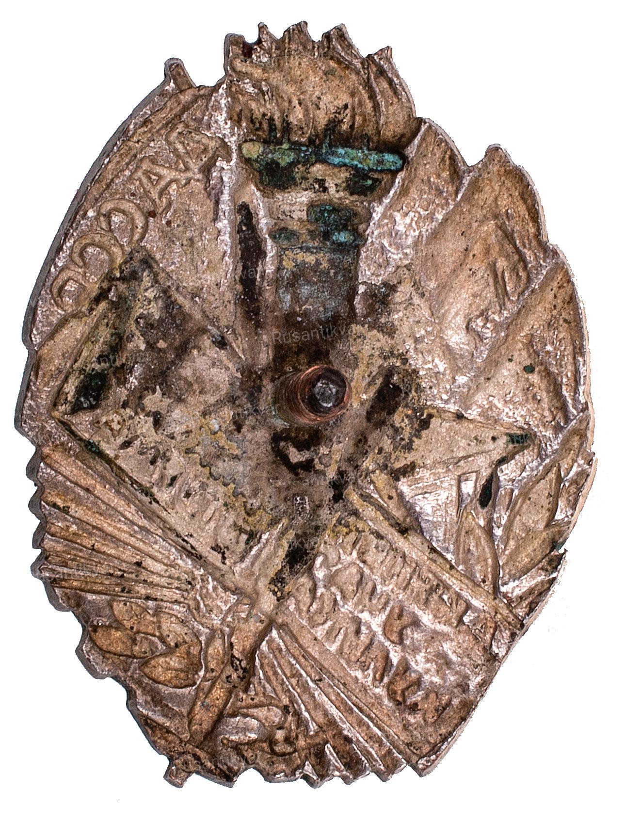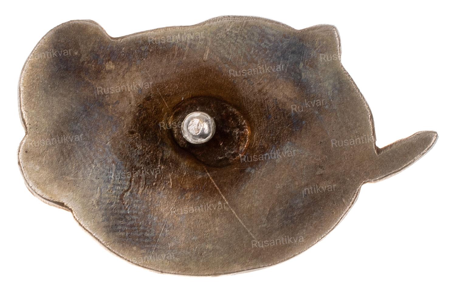 Учреждён в 1933 г. Ленинград, мастерская МОАХ. На гайке выбито "176.752 / МОАХ л.д." Бронза, серебрение, эмаль, винт, 5.5 гр. Цельноштампованный. Размеры 49.6 х 31.6 мм. Сохранность очень хорошая (ХF+), трещины и сколы по эмали. Бойнович, Сибирцев № 2.100. Зак, Калистратов, Воронченко "Знаки добровольных обществ СССР" № 11.12. Довольно редкий (Р).