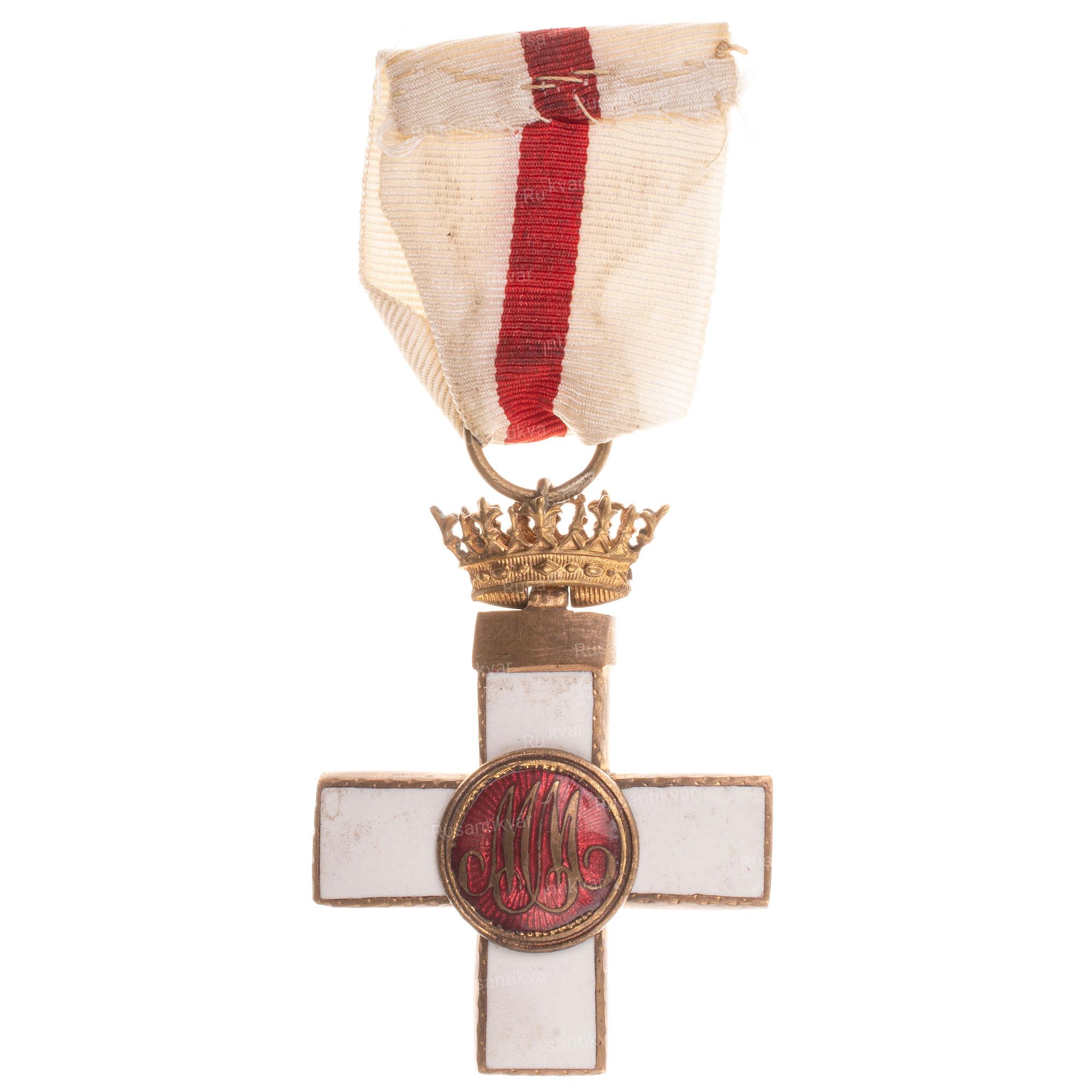 - Красный крест (крест покрыт красной эмалью) - за заслуги в военное время при участии в военных действиях;