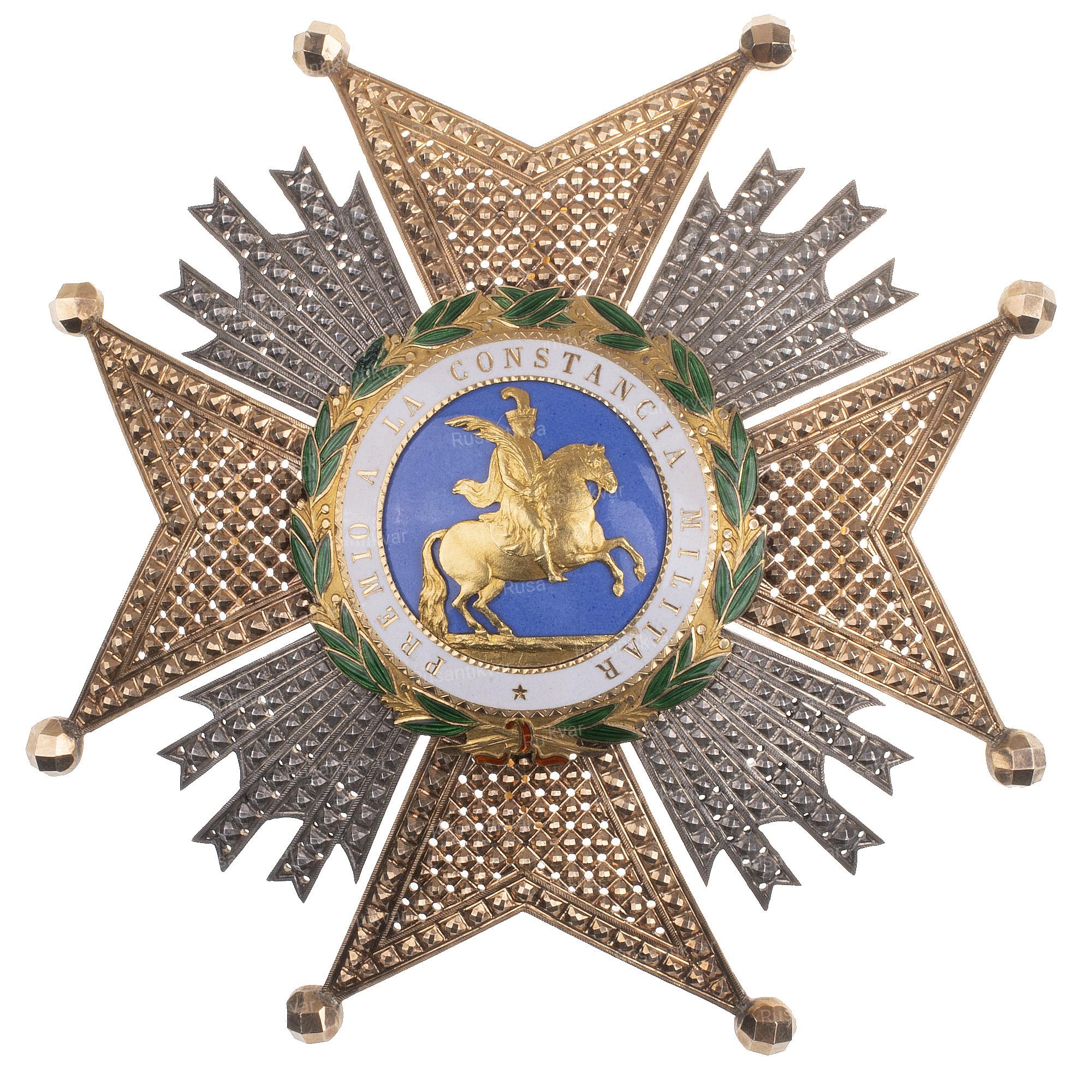 Учреждён 3 августа 1864 года королевой Испании Изабеллой II. Неизвестная мастерская, 1875 - 1931 гг. Бронза, эмаль. Размеры 60.7 х 41.7 мм. Сохранность очень хорошая (XF). Довольно редкий (Р).