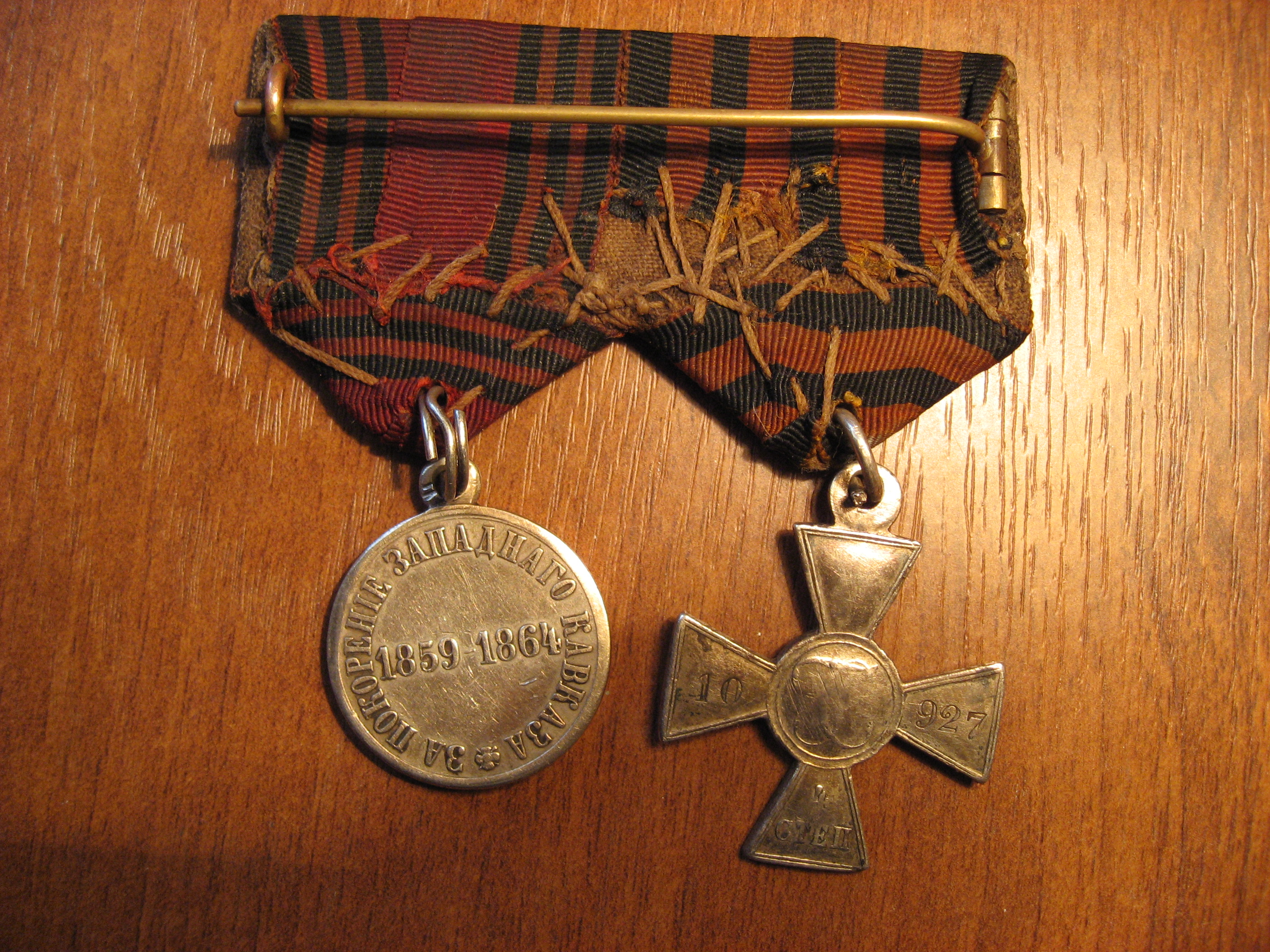 Колодка на две награды: ЗОВО 4 ст. №10.927 и медаль"За покорение Западного Кавказа".