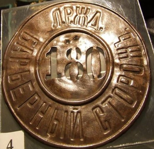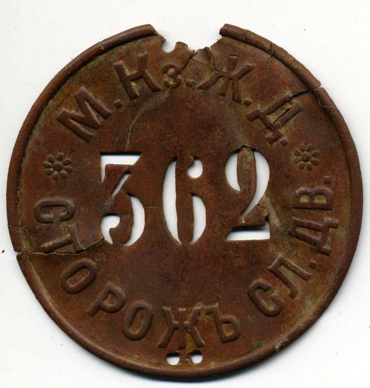 Должностные знаки; Сторож ст.Харьков Курско-Харьково-Севастопольской железной дороги; Барьерный сторож Либаво-Роменской железной дороги; Мостовой сторож Варшавского округа путей сообщения; Сторож охраны Московско-Казанской железной дороги; Сторож службы движения Московско-Казанской железной дороги.
