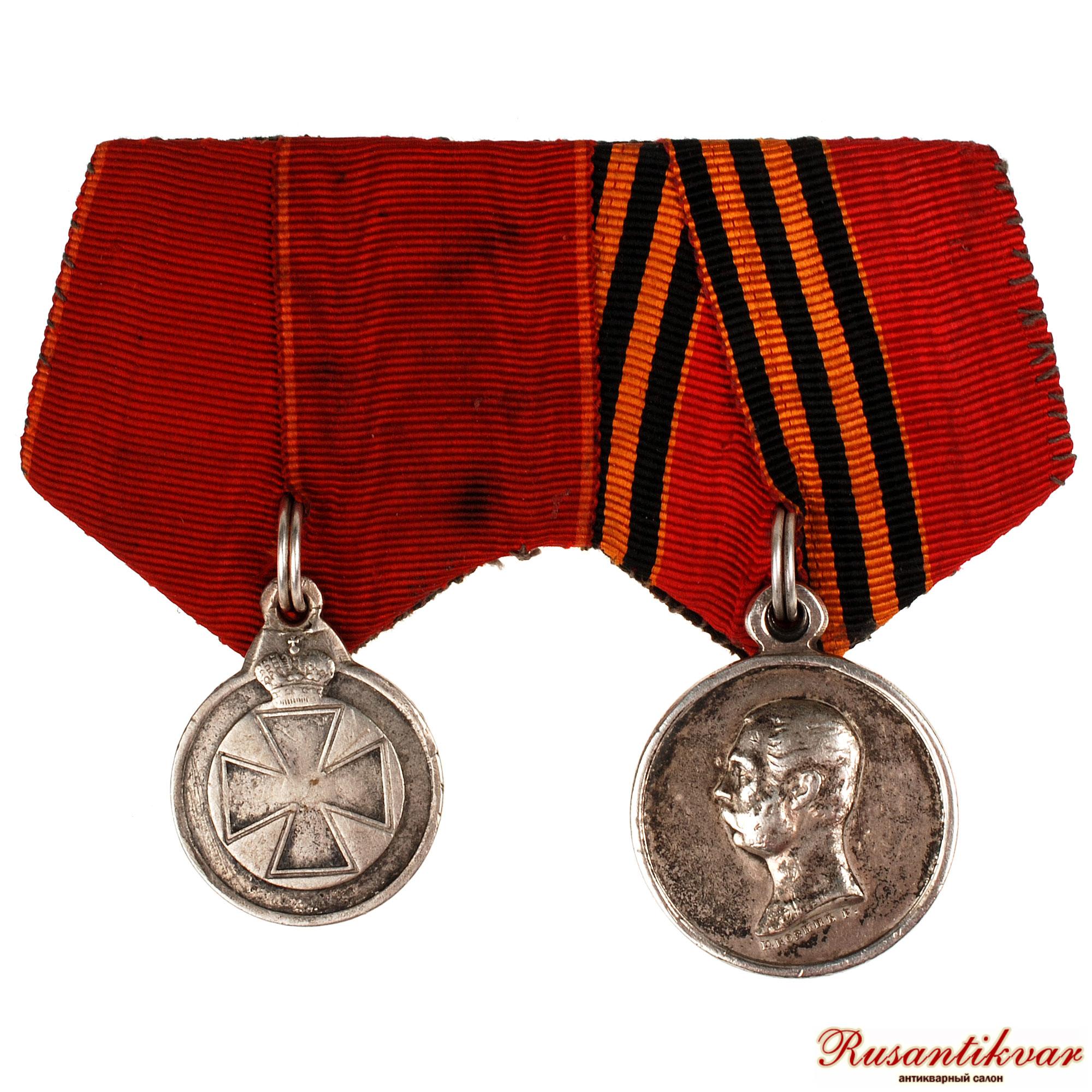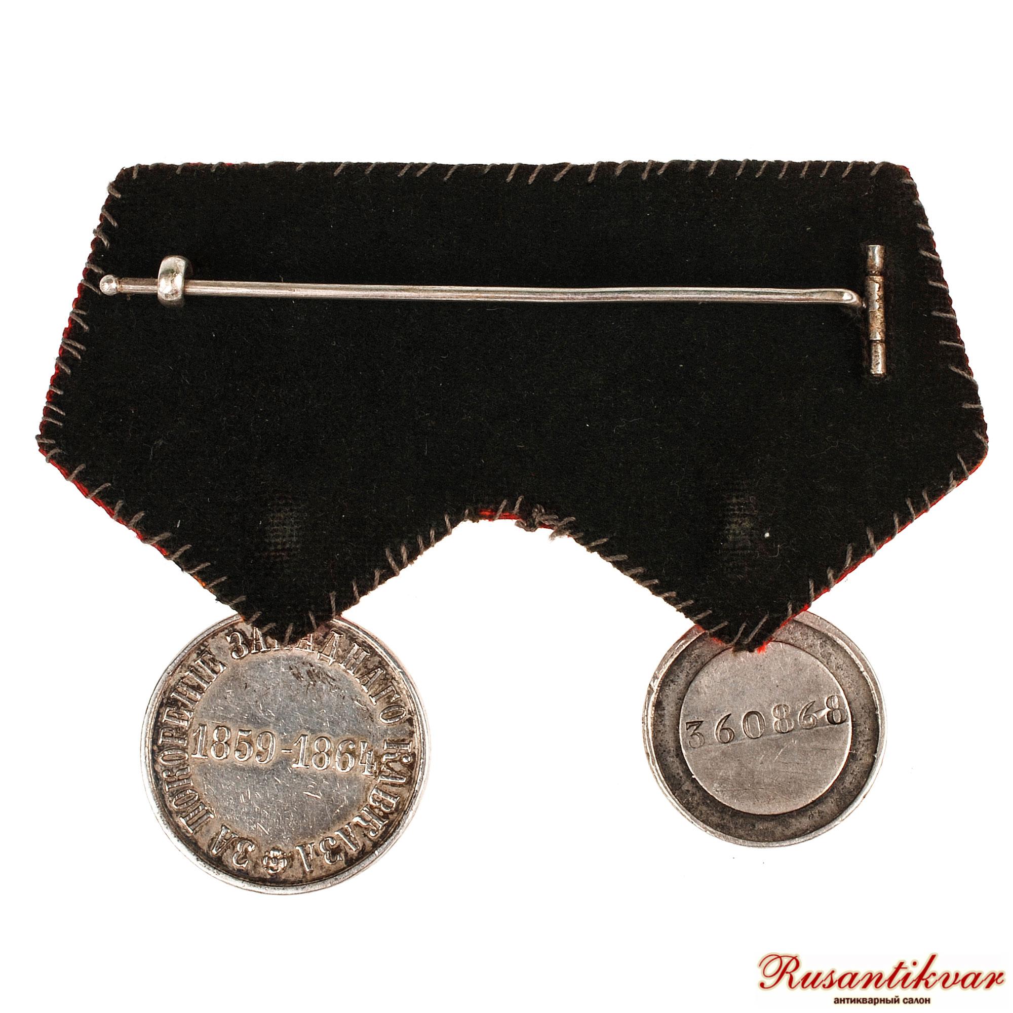 Колодка на две награды. Медаль "За покорение Западного Кавказа 1859-1864 годов" и "Знак отличия ордена Святой Анны" №360.868