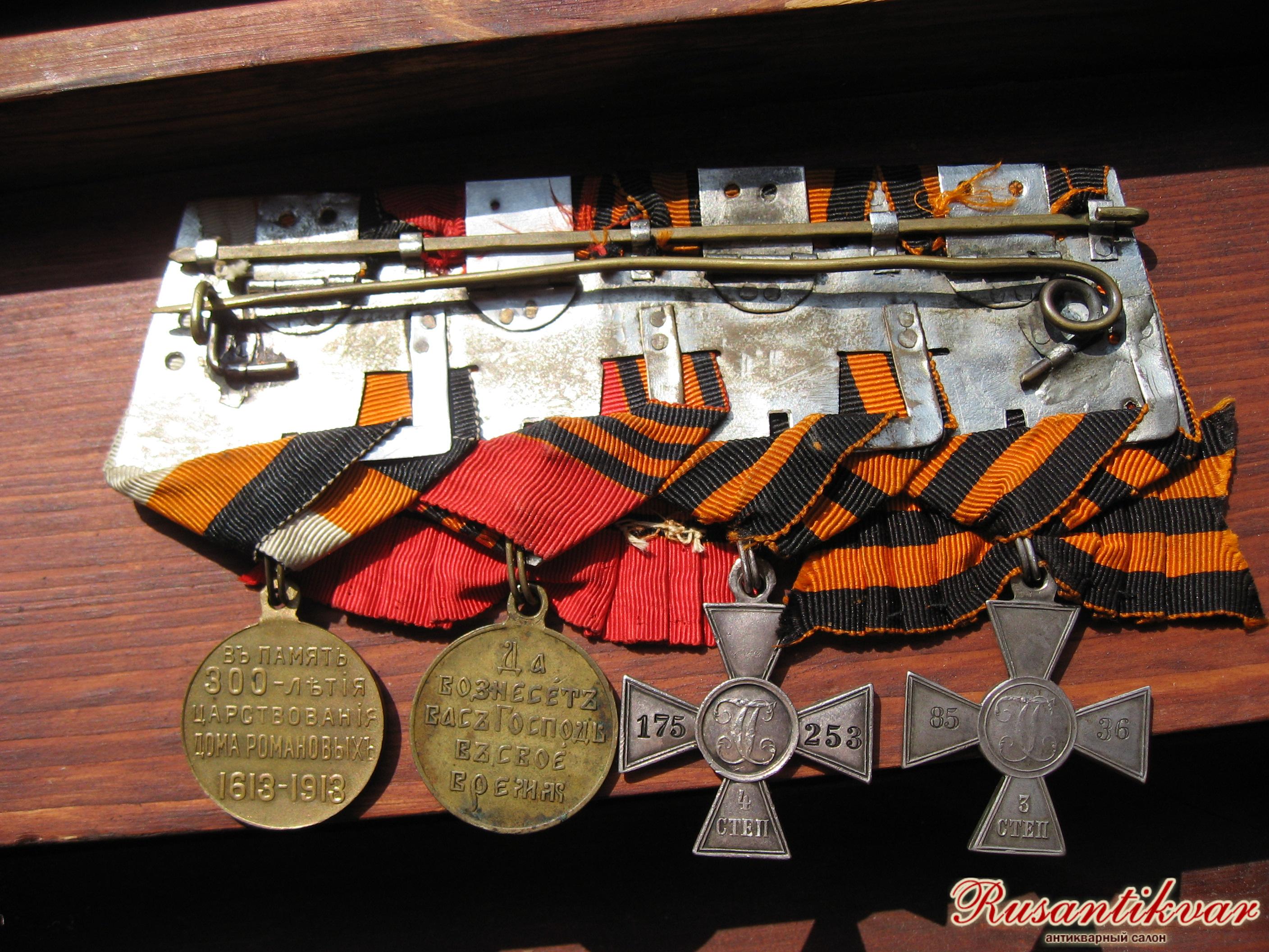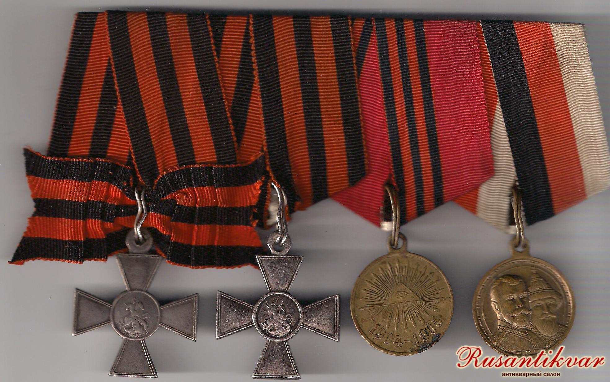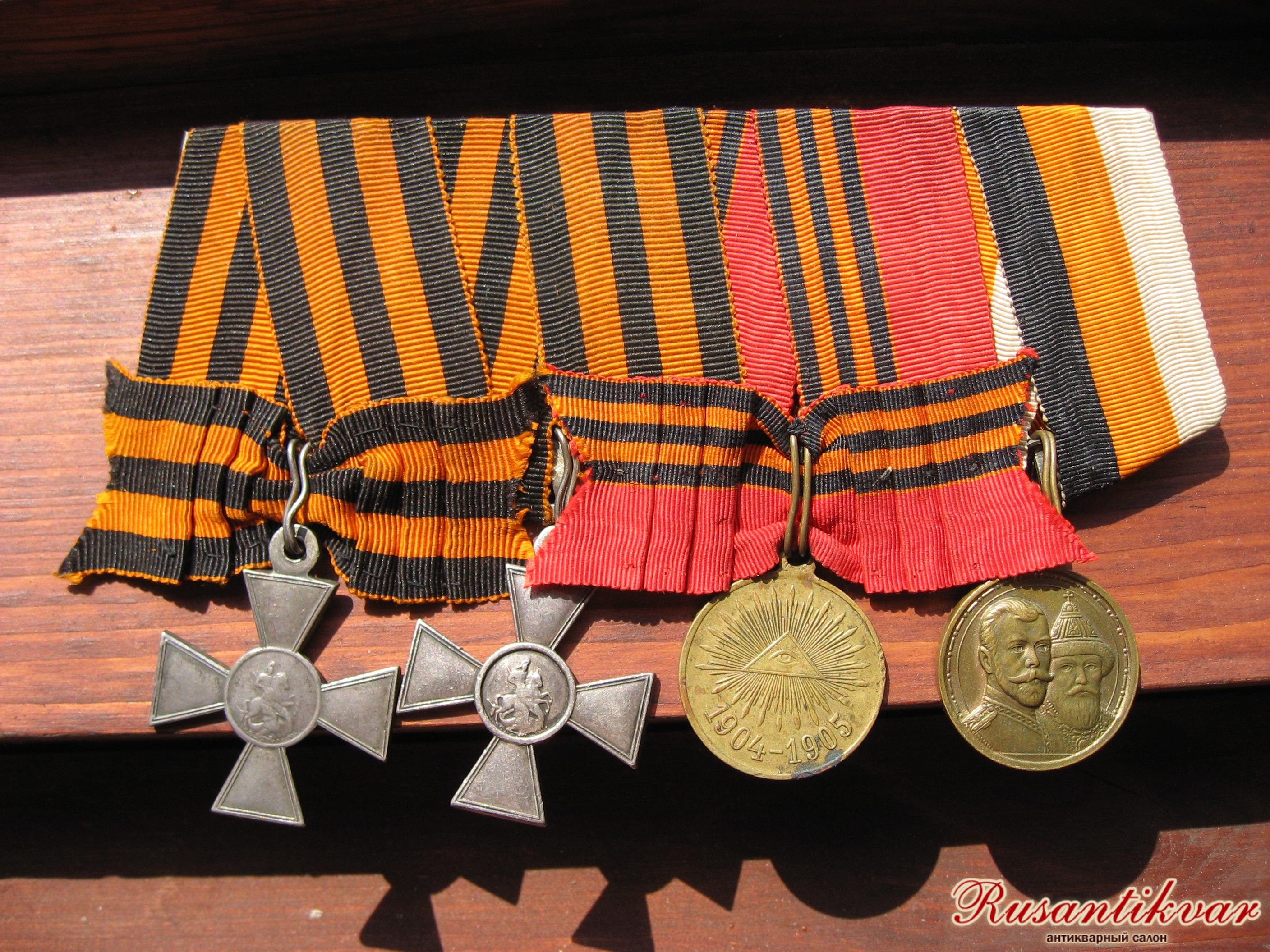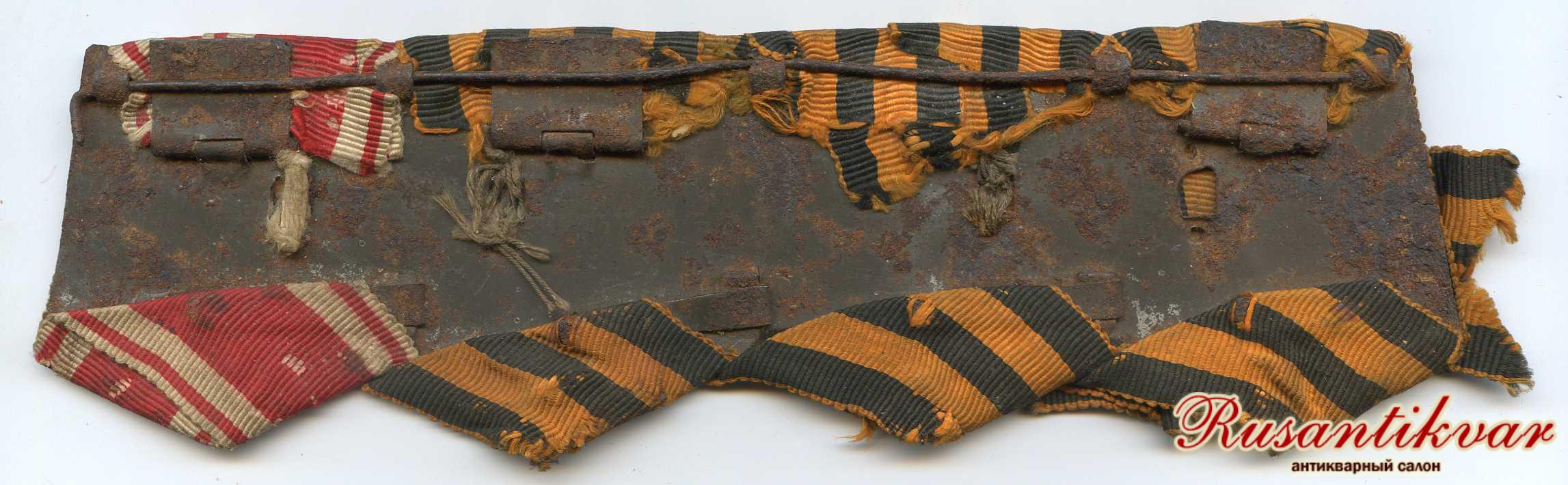 Колодка самодельная на две награды: Знак отличия Военного ордена 4 ст.№ 143.656 и Медаль" В память Русско-Японской войны 1904-1905 гг."светло бронзовая .