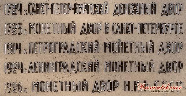 Ленинградский монетный двор был основан в 1724 г. на территории Петропавловской крепости в С.-Петербурге. Празднование 200-летнего юбилея предприятия состоялось в 1924 г. В декабре 1924 г. на заводе трудилось 2256 человек - 2110 рабочих и 146 служащих. Ныне Санкт-Петербургский монетный двор Гознака - один из крупнейших монетных дворов мира и одно из старейших промышленных предприятий С.-Петербурга.