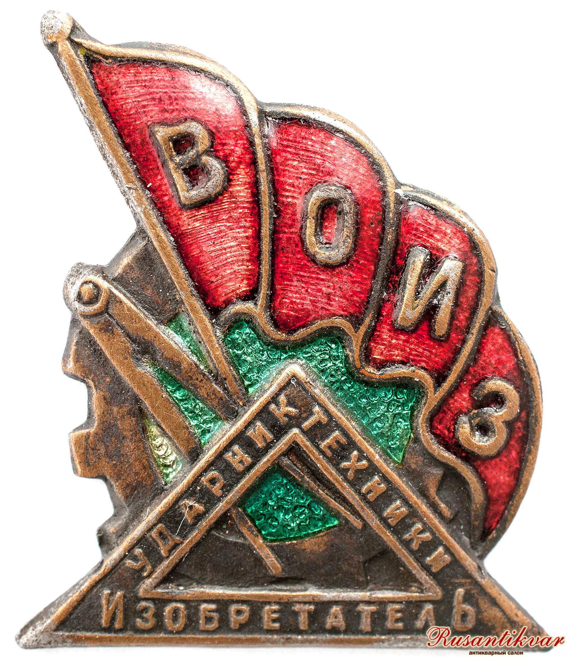 Знак "Ударник техники. Изобретатель. ВОИЗ" 1930-32 гг.