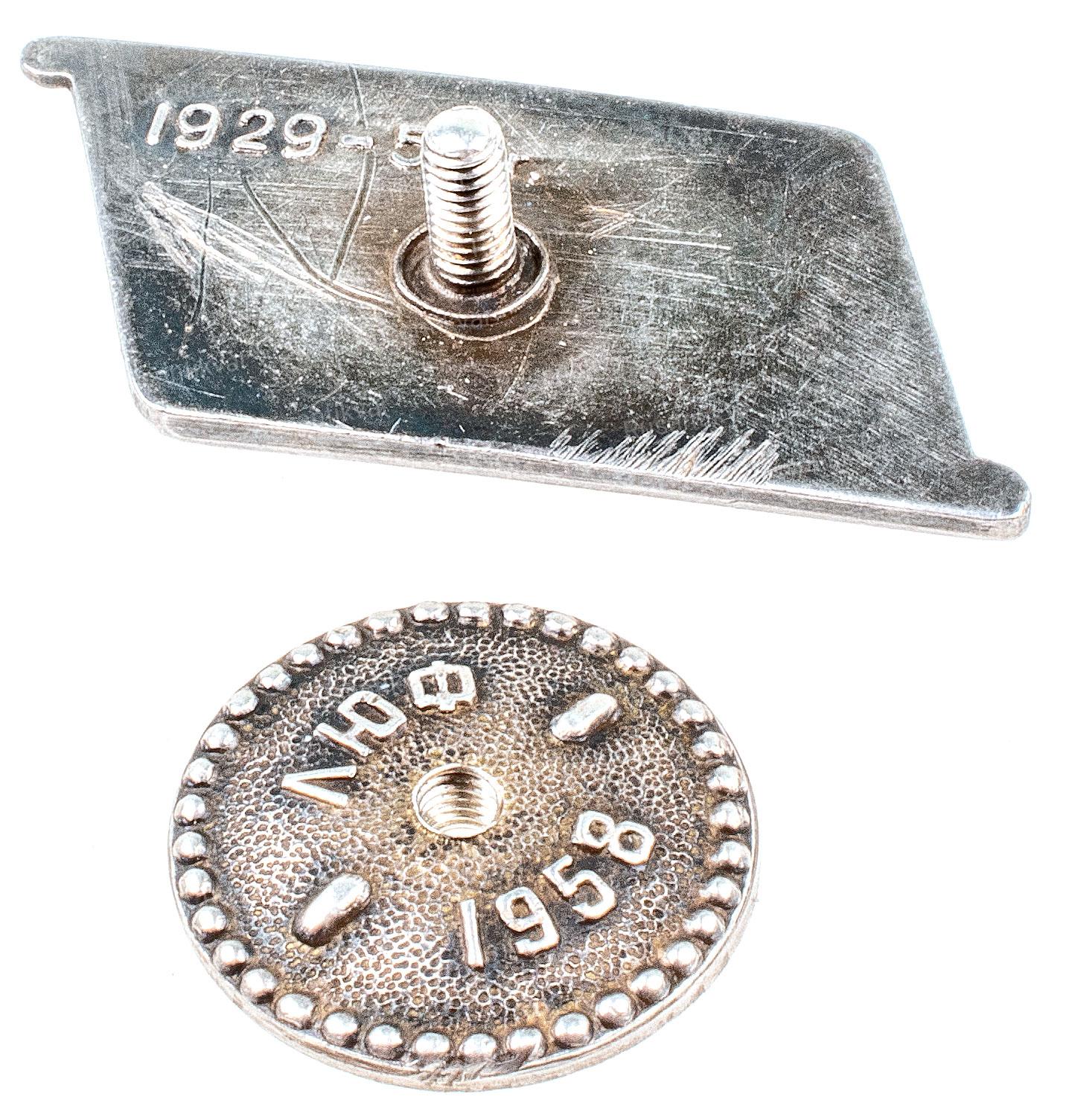 СССР, неизвестная мастерская, начало 1931 - 1933 гг. Бронза, эмаль, винт, 3 гр. Размеры 29.4 х 24.8 мм. Сохранность отличная (UNC-). Довольно редкий (Р).