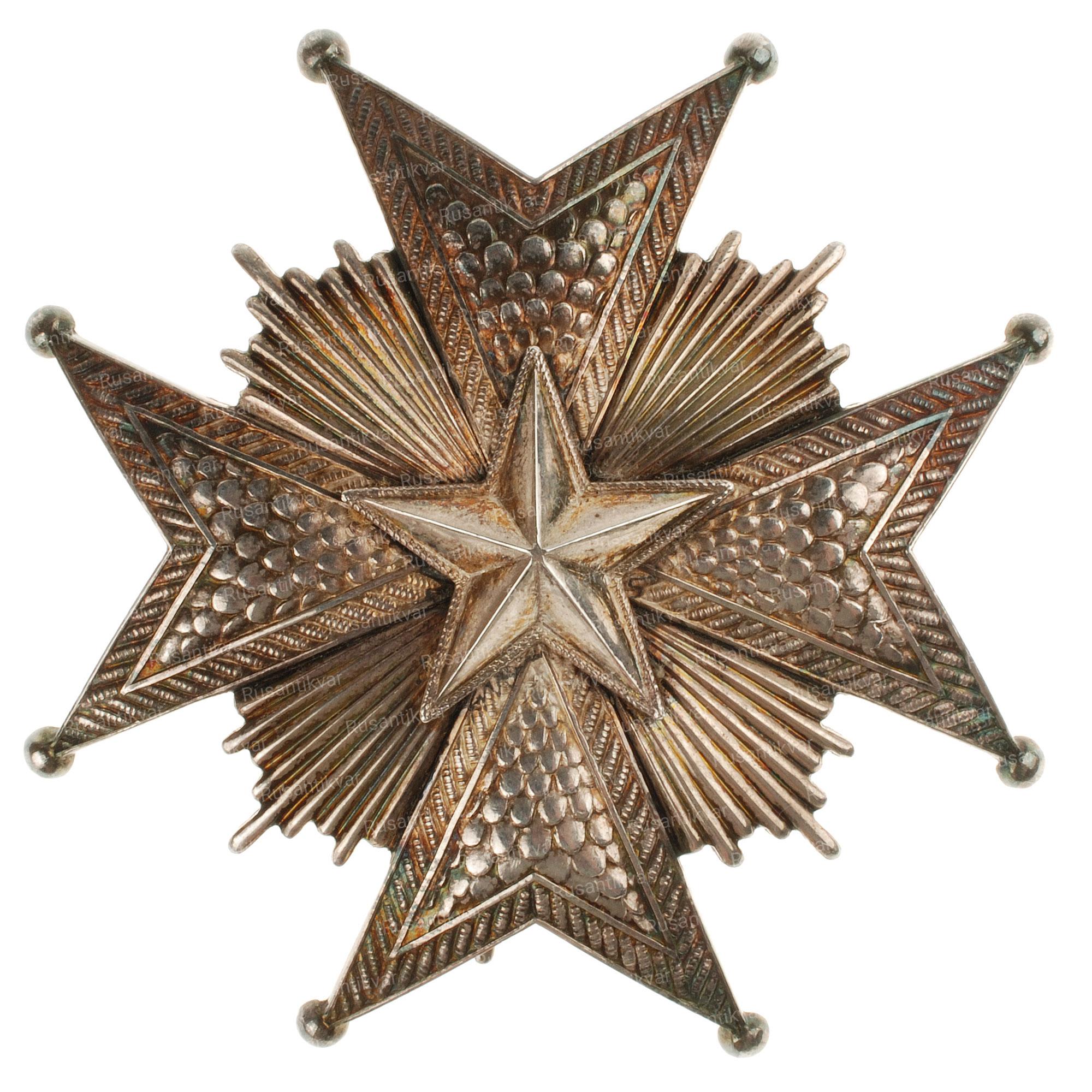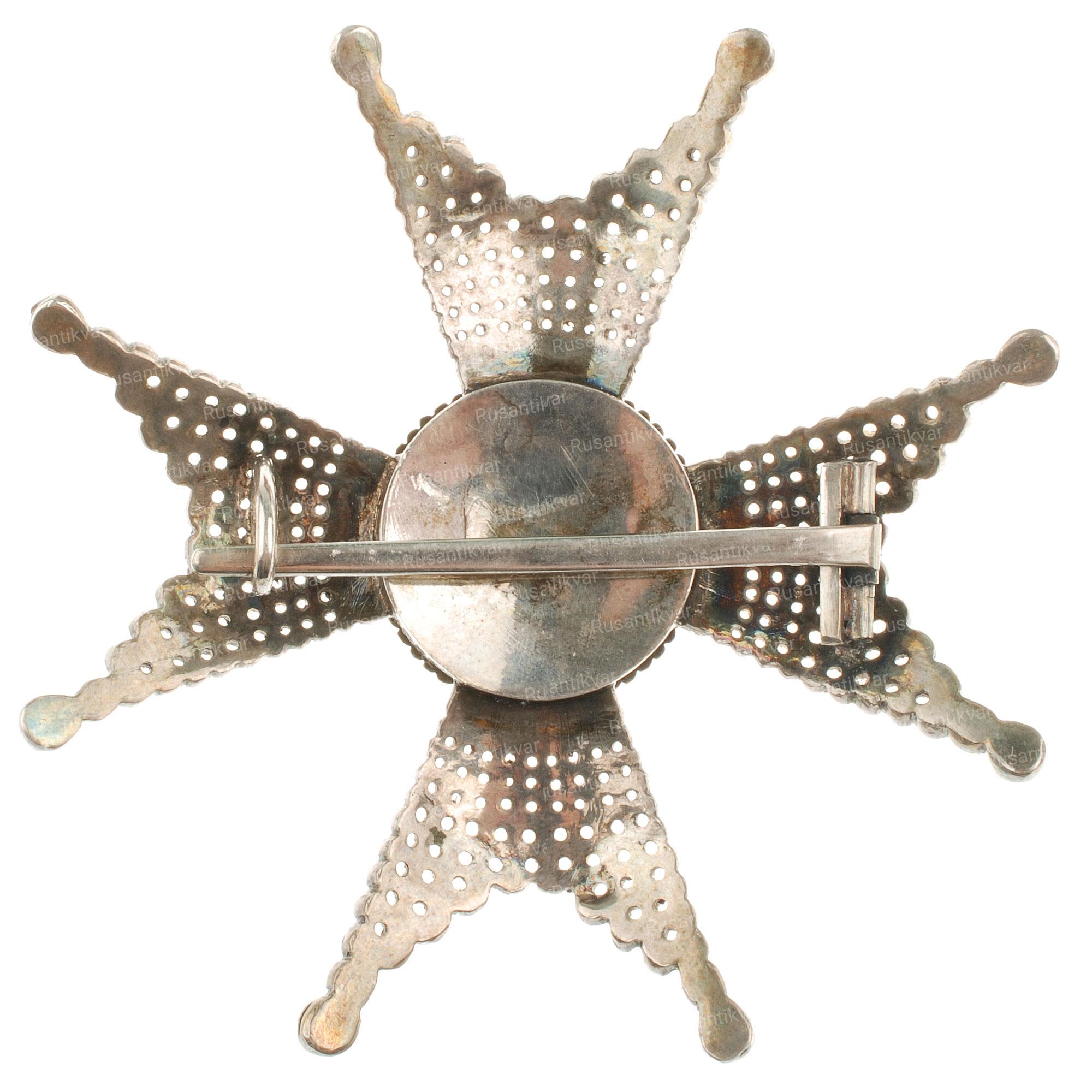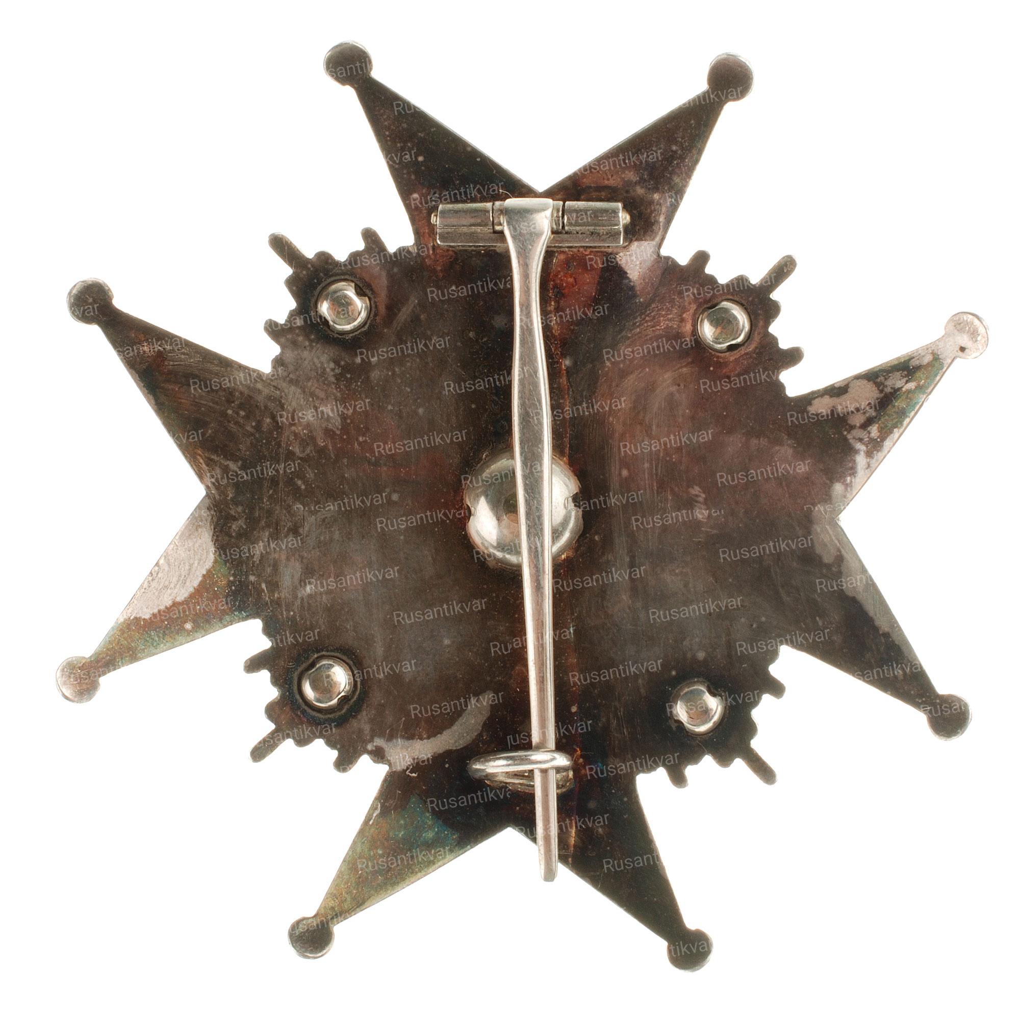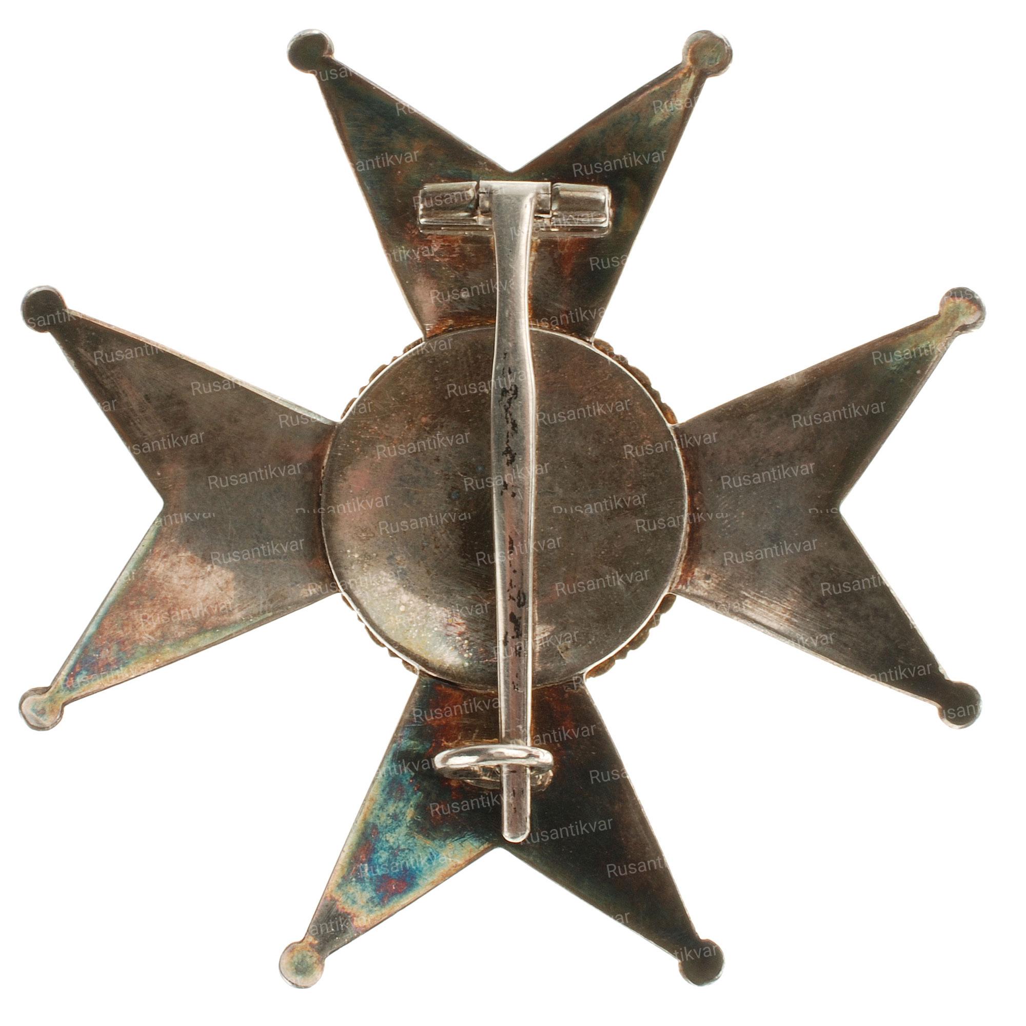 Знаком Ордена является Золотой восьмиконечный крест покрытый белой эмалью. На круглом медальоне