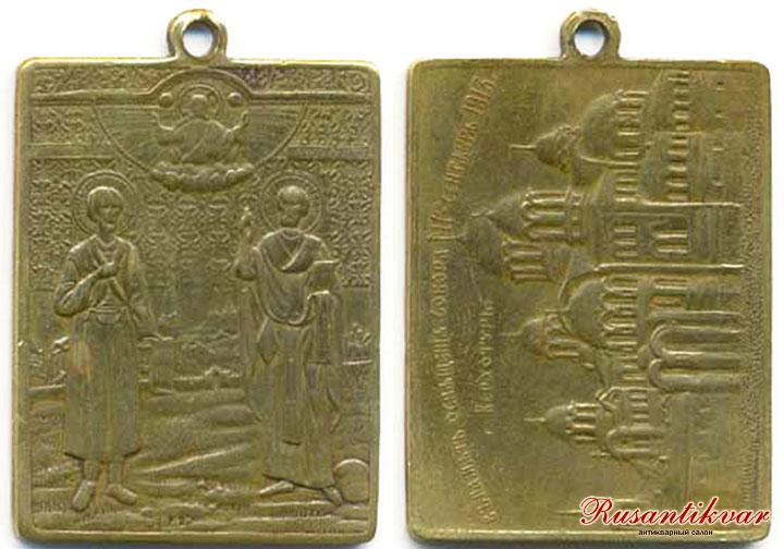 Изображен семиглавый собор. Над ним надпись: «В память освещения собора 11 сентября 1913 г.»