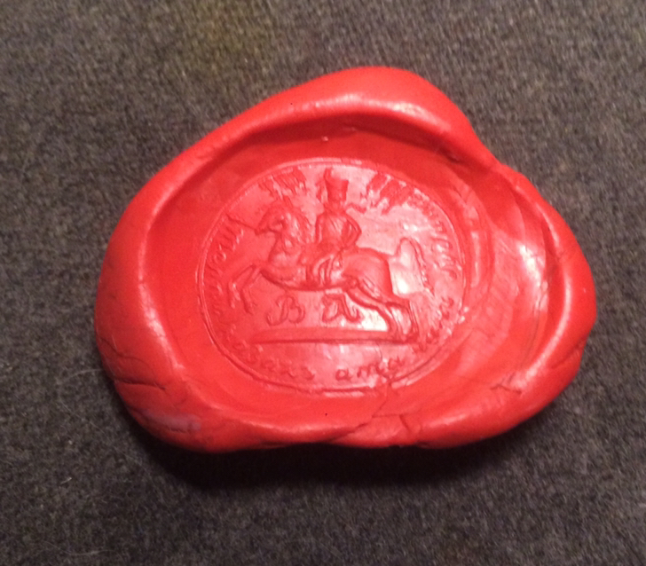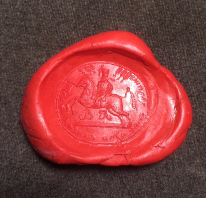 Изображен казак на коне в форме первой четверти 19 века.Под конем букву "В А".