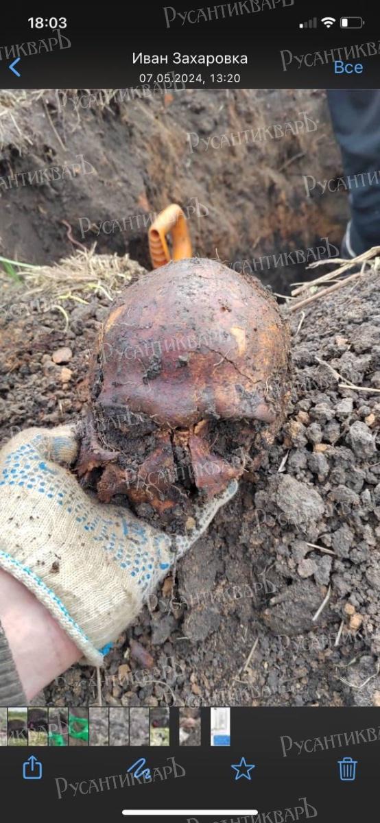 Хотели уже заканчивать звуков не было, но друг предложил зачистить на последов выход из блина, а мы на него накидали отвал еще к тому... земля и кирпичи, начали бить подкоп и появились кости! Сразу стало понятно боец!