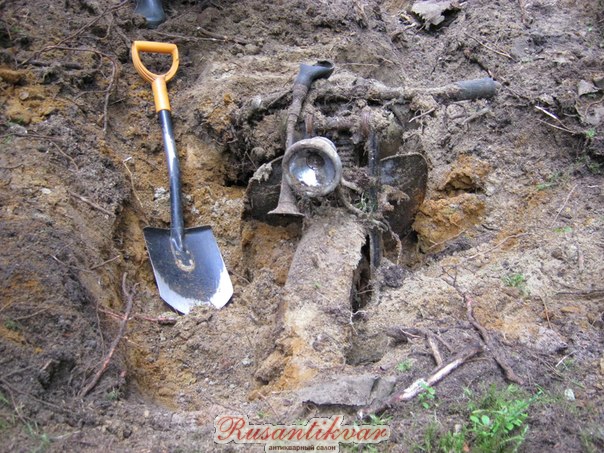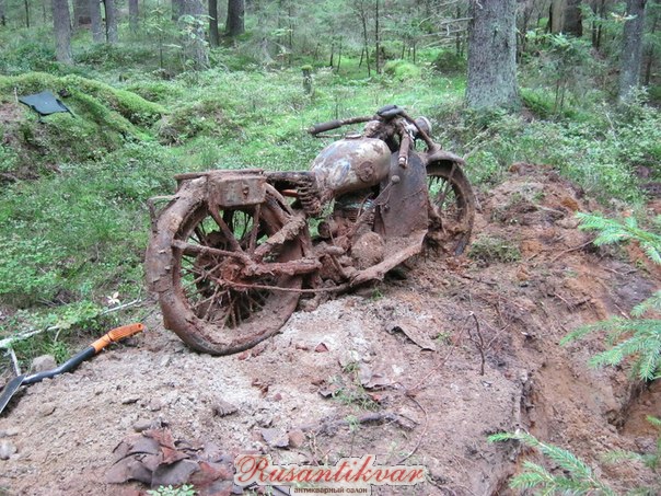 Наши коллеги из Калуги в этом сезоне во время вахты нашли в лесу по вв2 Советский мотоцикл.