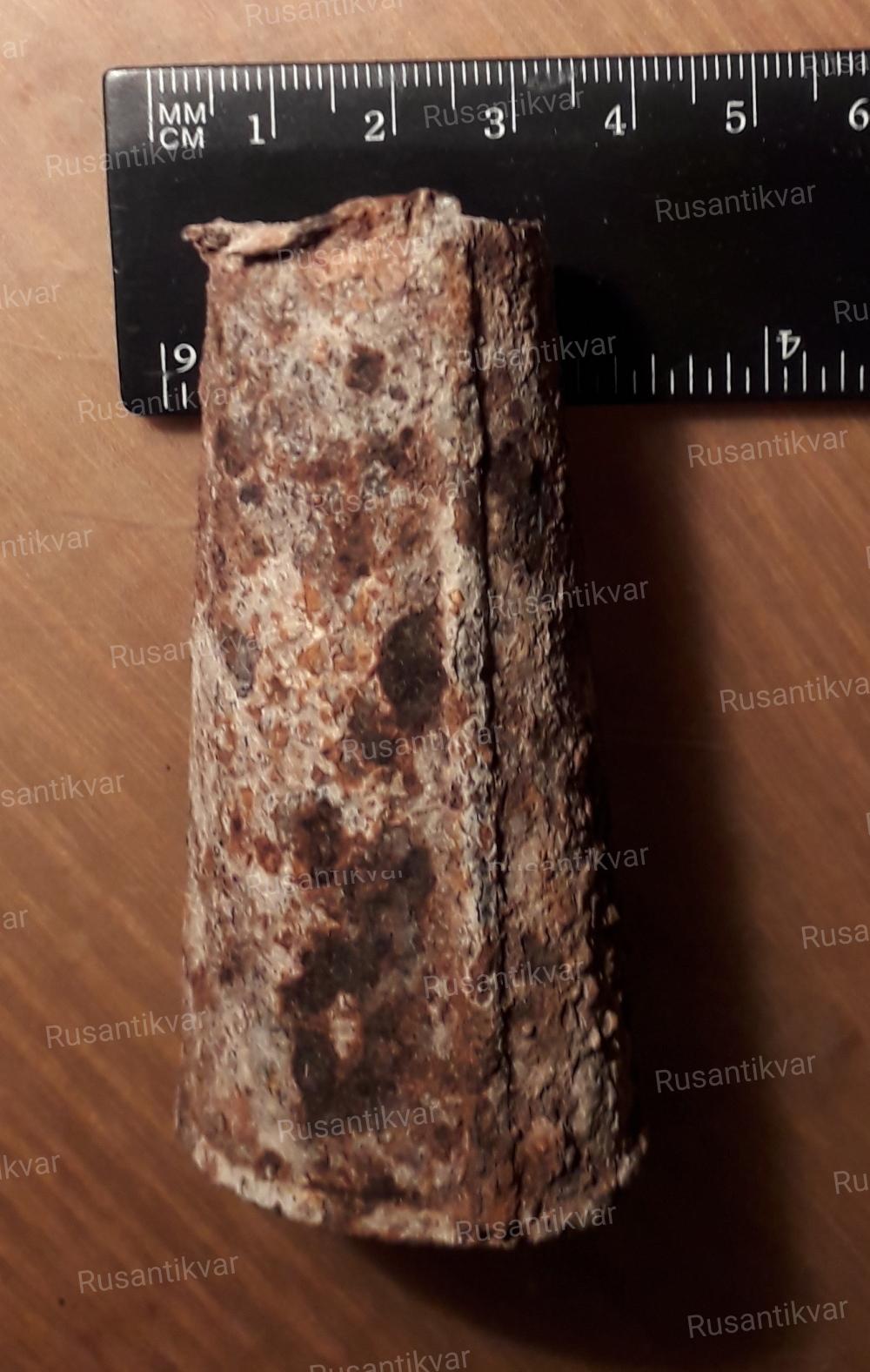 Хотелось услышать мнение по одному предмету. Жестяная трубка ( жесть толщиной как на флягах , банках "рационов" , баночках от крема для обуви и т.д. ) , размеры на фото , к одному концу сужается примерно до 3 см. Верх шириной чуть больше 4 см. Верх фабрично завальцован. Низ сохранился не весь . Видно , что обрезан чем-то острым. По длине идет фабричный шов.