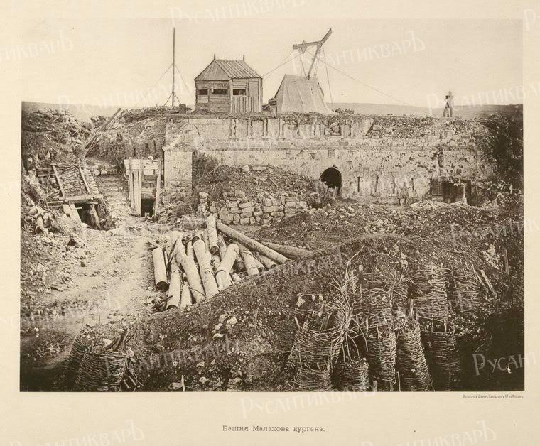 Фотография 1919г. Развалины оборонительной башни Малахова Кургана, обратите внимание на частично сохранившиеся бойниц. Второго этажа! После реставрации 1950х годов их не стало… на фото моряки и солдаты стран Антанты.