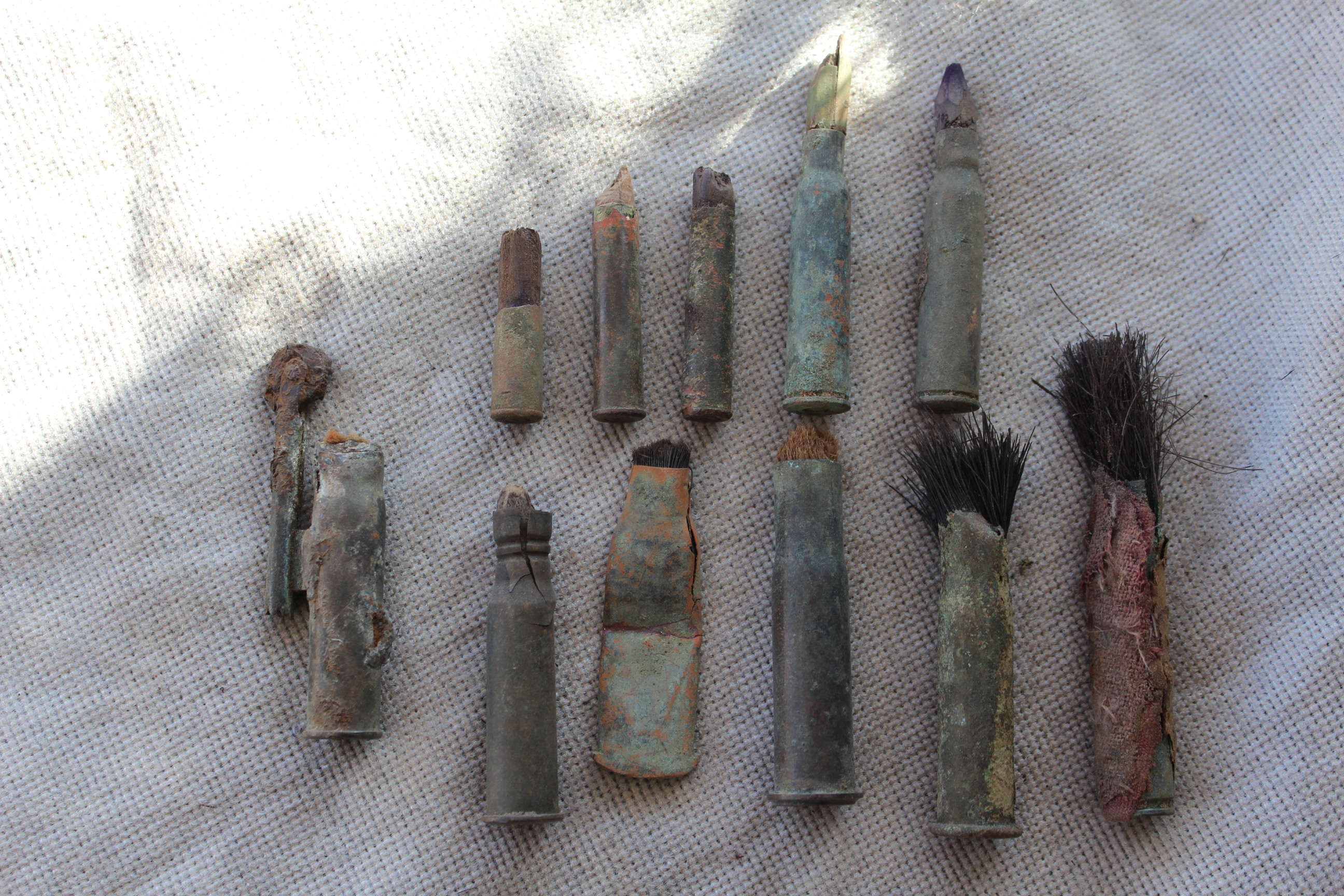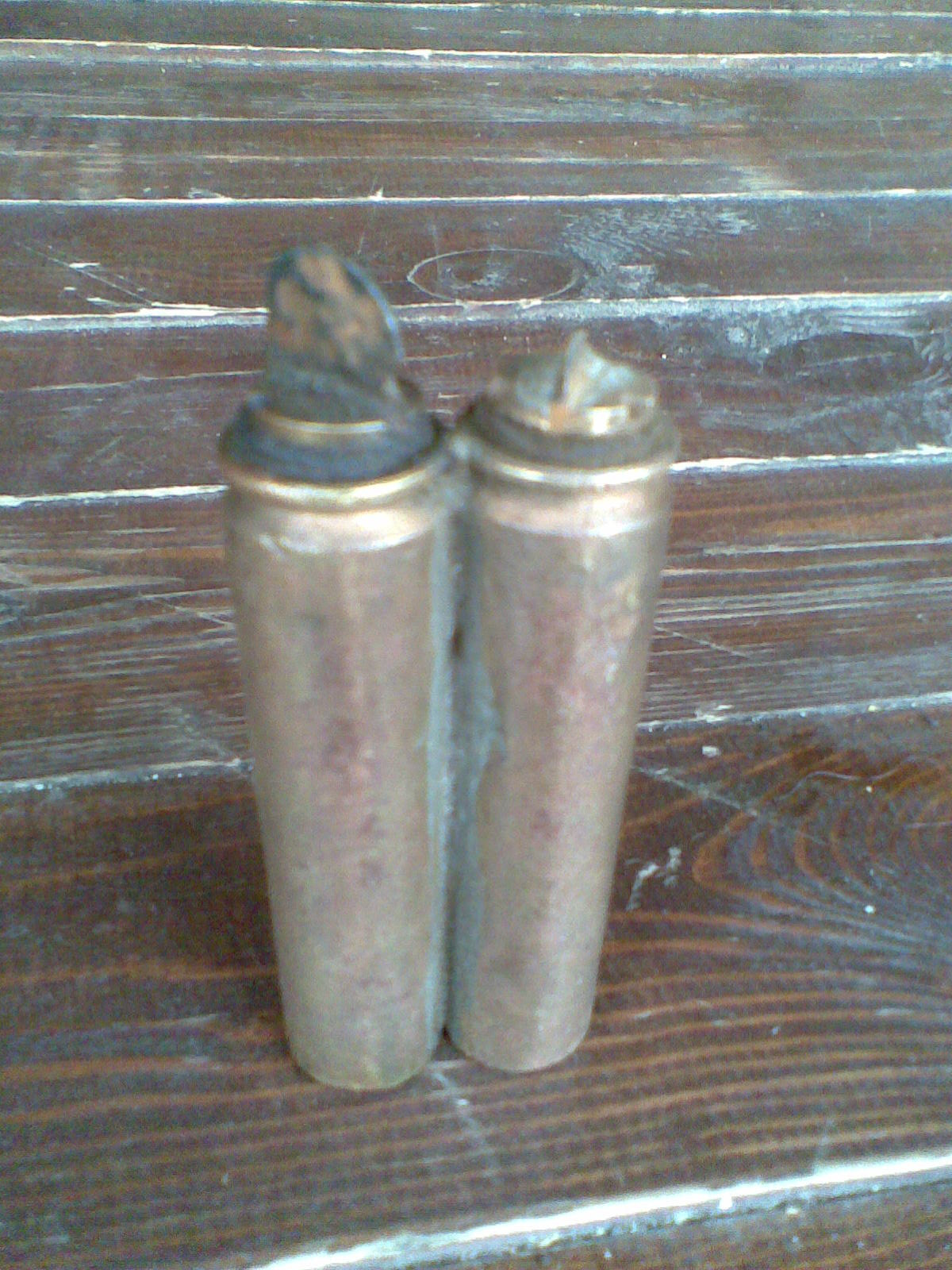 Мастерили видимо массово,я с друзьями нашли уже сотни две обрезанных арт. гильз,попадаюсь иногда остатки латуни от гильз,со следами резки(видимо каждый выпиливал в меру своей фантазии),то есть использовали все что имели под рукой(жаль нет фото,видел вытяжку для блиндажа,сделанную из трех обрезанных арт.гилиз,но это уже бытовуха)